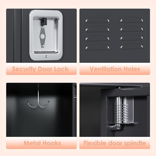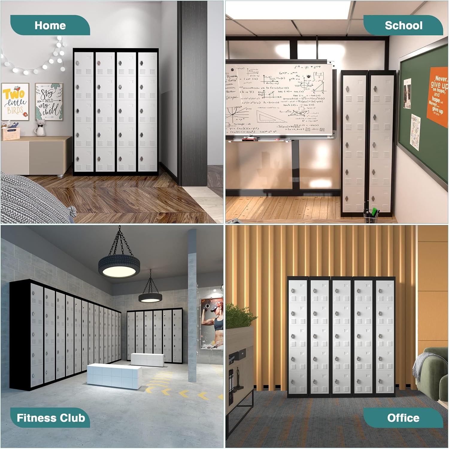 Metal Lockers with 5 Doors,72" H Tall Steel Storage Lockers for Employees,Locker Storage Cabinets for School, Gym, Home, Office (5 Grey Door)