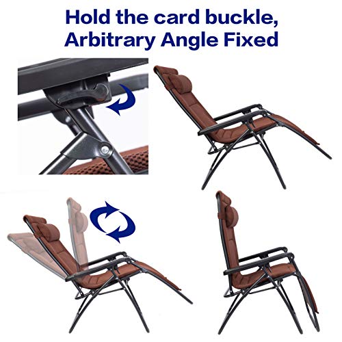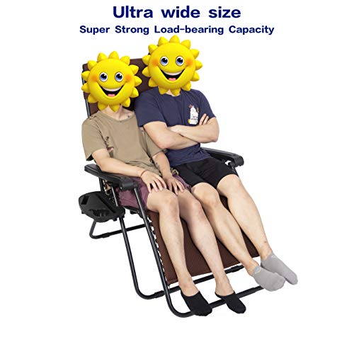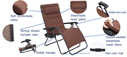 Oversize XL Padded Zero Gravity Mesh Lounge Chair Dark Brown Mesh Wider Armrest Adjustable Recliner with Cup Holder, Support 350 LBS
