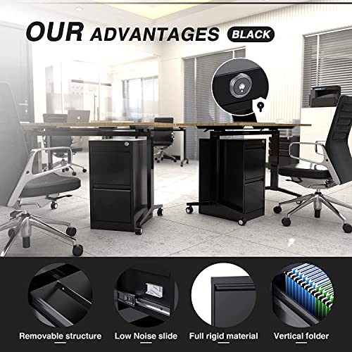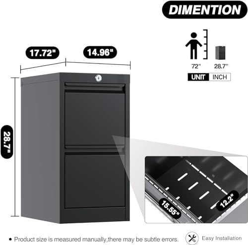 2 Drawer Metal Lateral File Cabinet with Lock, Lateral Filing Cabinet with Letter/Legal Size, Metal Storage Cabinet for Home Office,Assembly Required(Black, 2 Drawer)