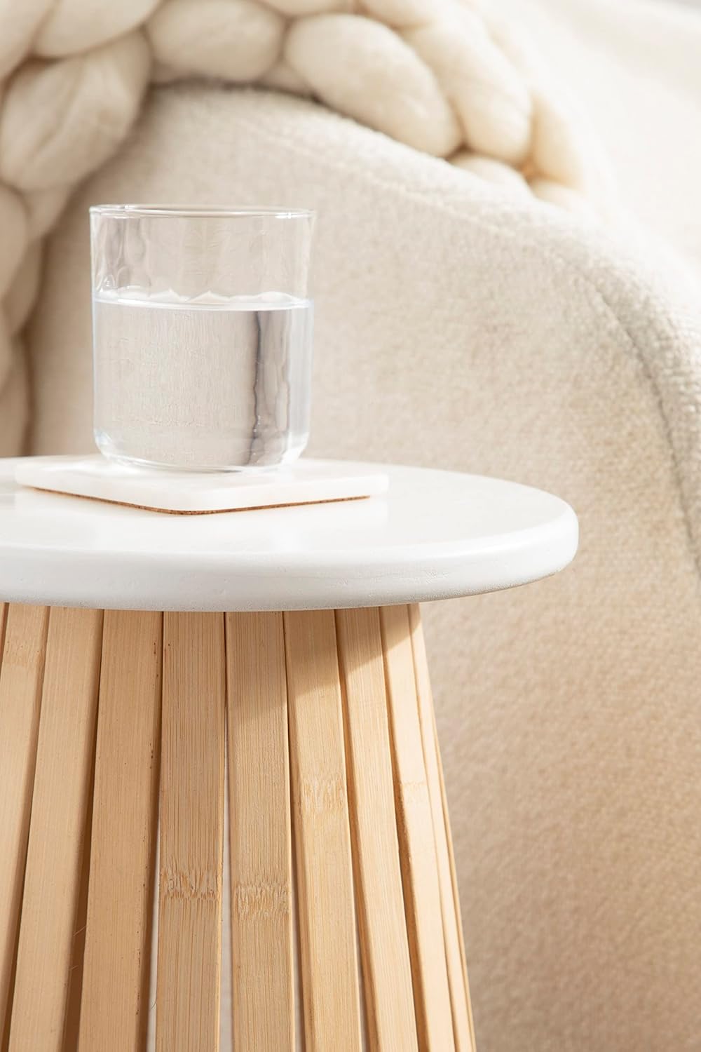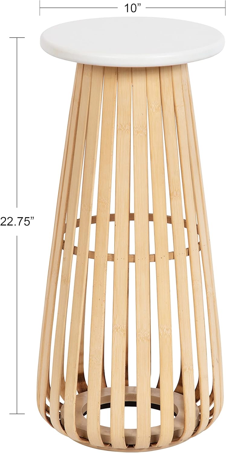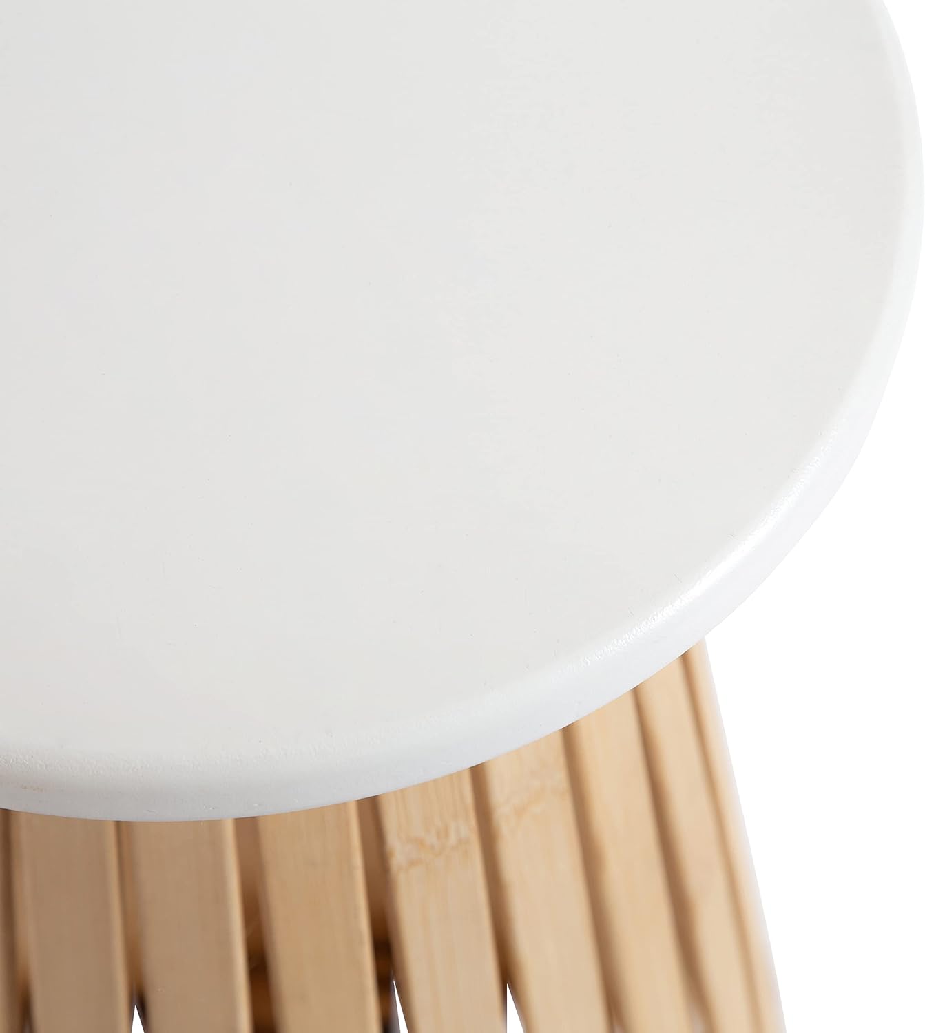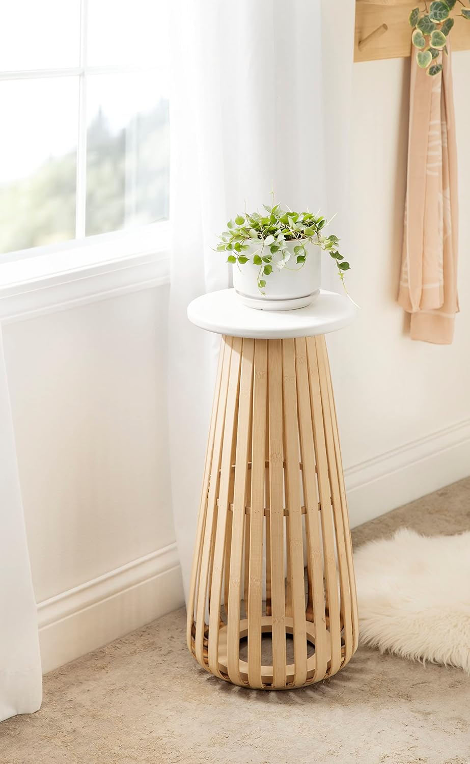 Kate and Laurel Oren Modern Boho Slatted Accent Drink Table or Indoor Plant Stand for Neutral Home Decor, 10x10x23, White/Natural