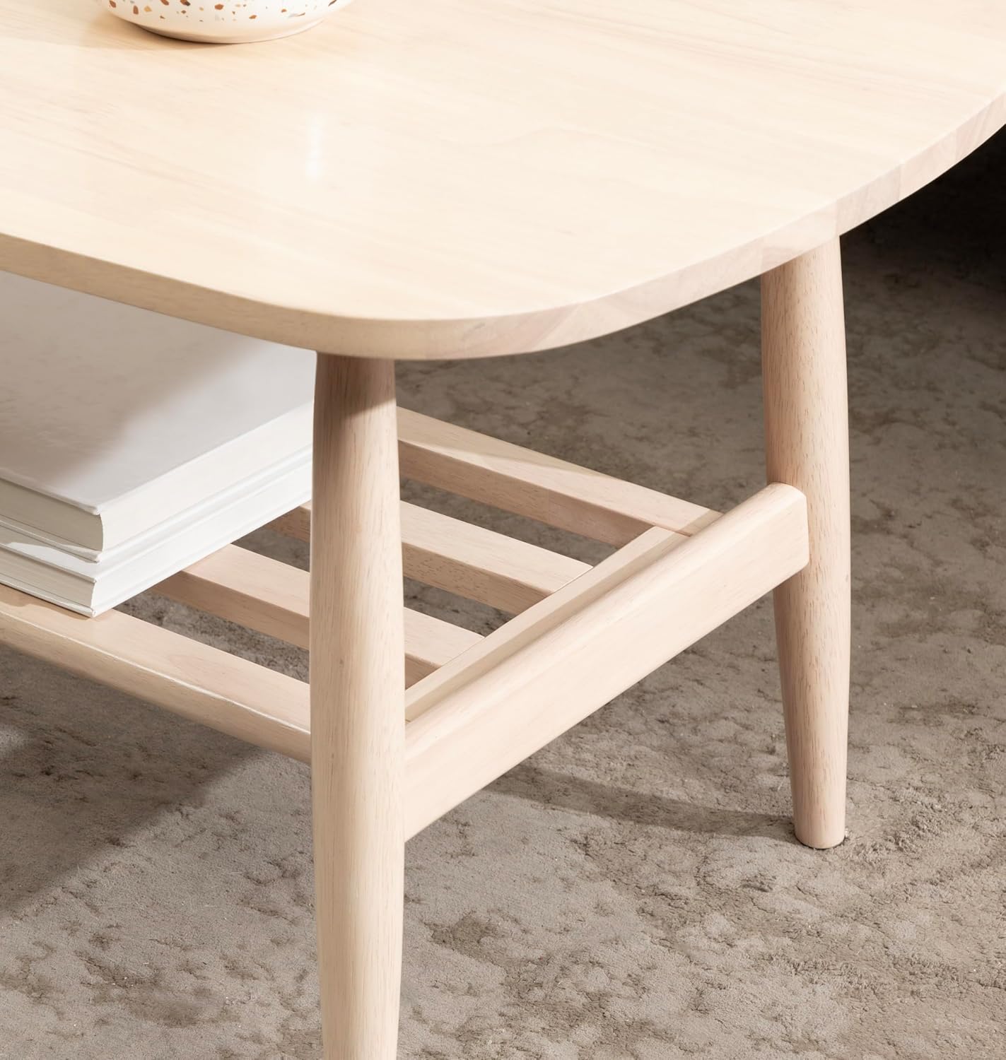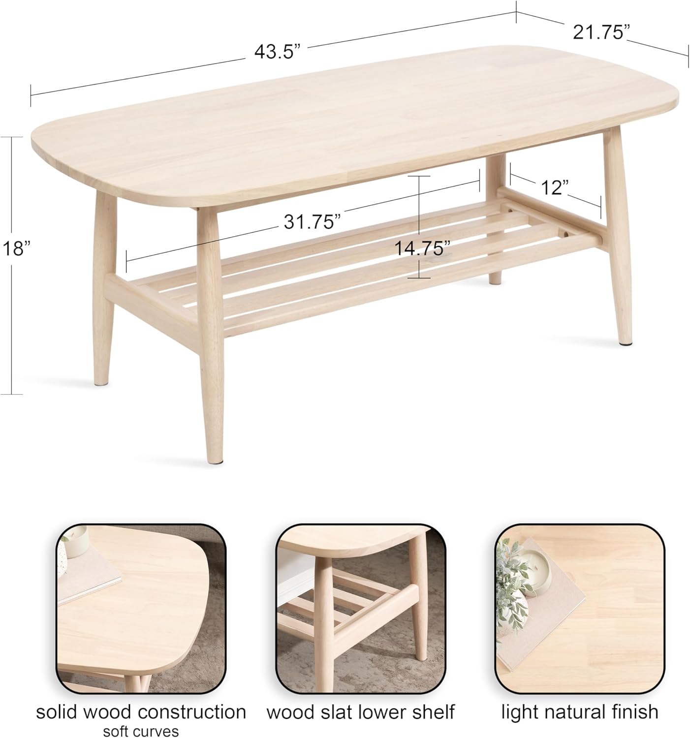 Kate and Laurel Niles Transitional Tiered Rectangle Coffee Table with Storage for Living Room Decor, 44x22x18, Natural
