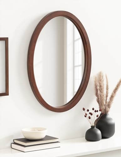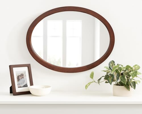 Kate and Laurel Hogan Mid-Century Oval Framed Wall Mirror, 18 x 24, Dark Walnut, Decorative Modern Wood Mirror with Soft Curvature and Oval Shape