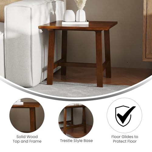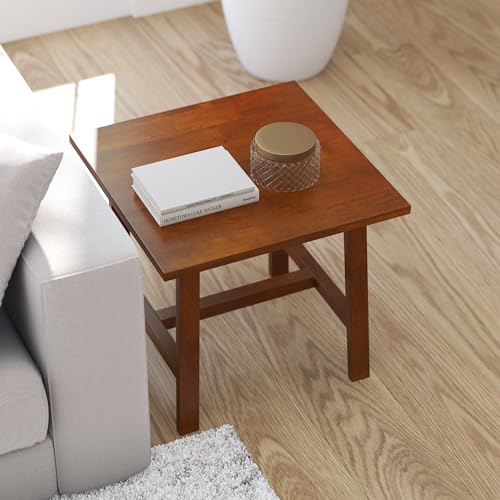Merrick Lane Mabel Trestle X-Frame End Table, Rustic Farmhouse Solid Wood End Table, Dark Gray