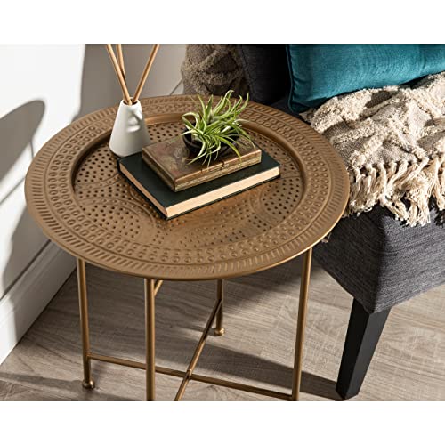Kate and Laurel Razza Modern Side Table, 19 x 19 x 20, Gold, Round Metal End Table for Storage and Display