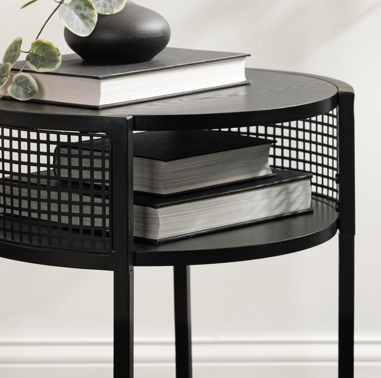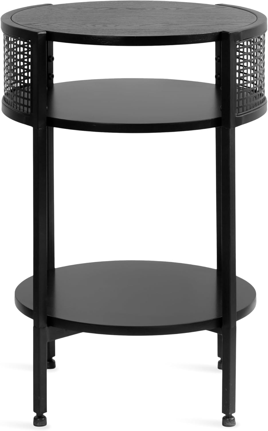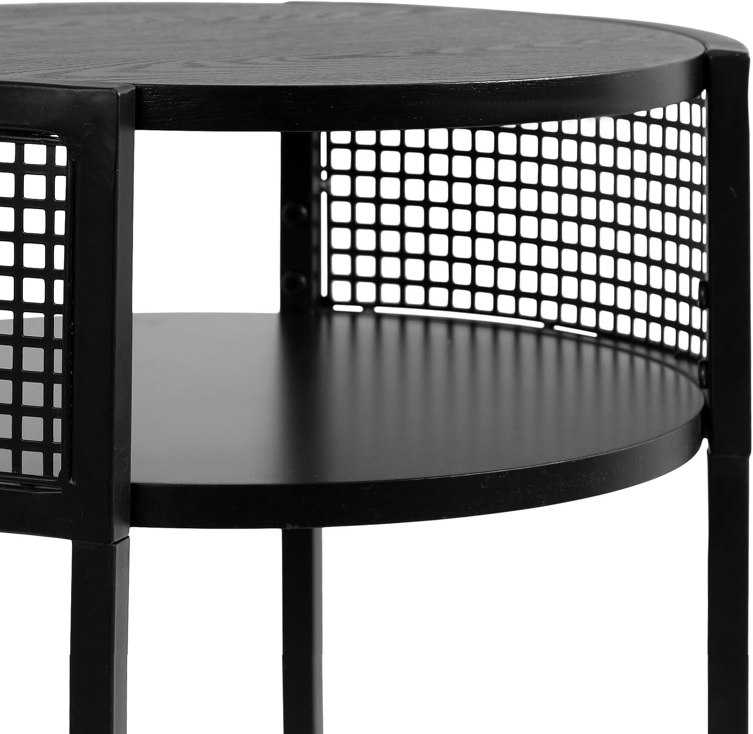 Kate and Laurel Urso Modern Tiered Round Side Table for Living Room Decor with Metal Mesh Details, 16x15x25, Black