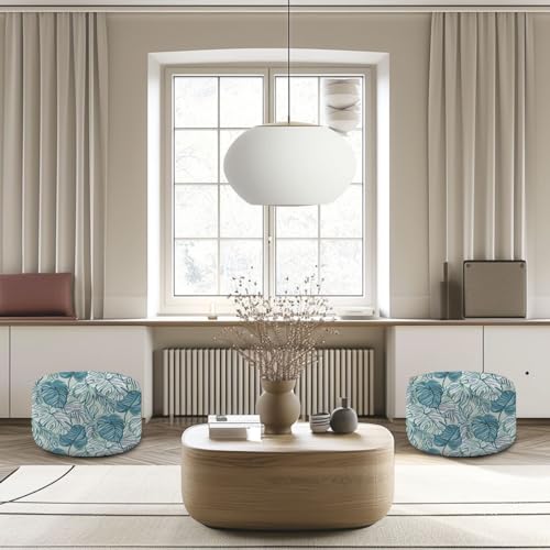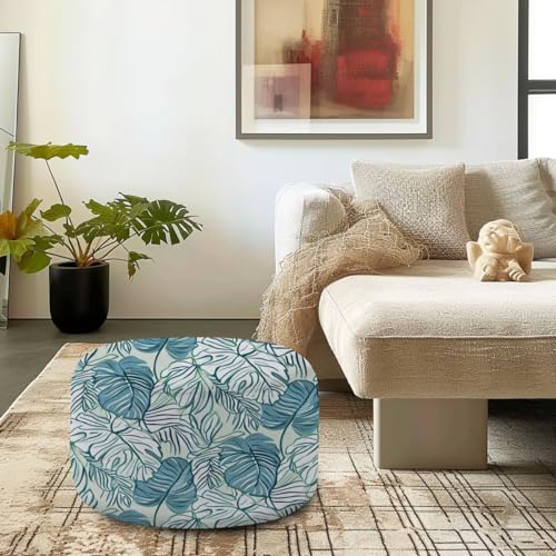 Round Pouf Ottoman Trending abstract seamless pattern colorful tropical leaves plants Foot Stool Foot Rest Floor Stool Bean Bag Chair Cotton Linen Removable Indoor Outdoor for Living Room Bedroom