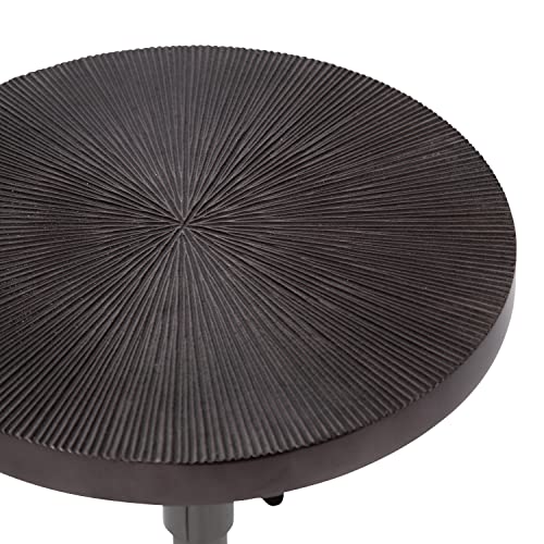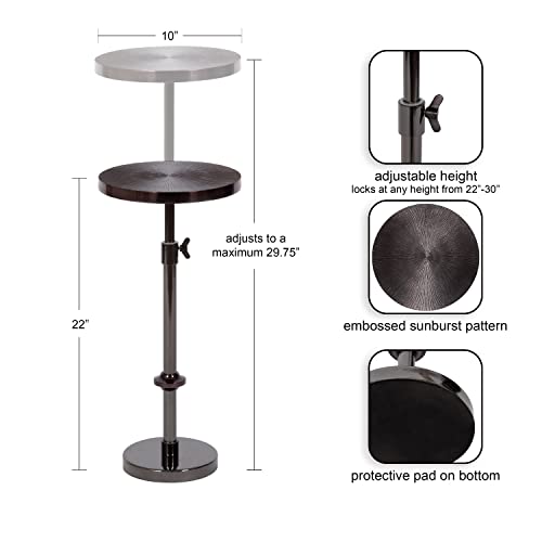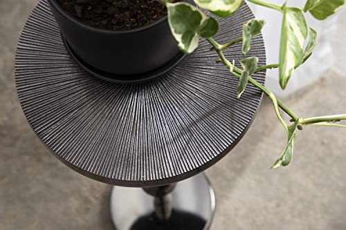 Kate and Laurel Engles Transitional Adjustable-Height Pedestal Drink Table, 10 x 10 x 30, Gray Gunmetal, Vintage Round Indoor Metal Plant Stand with Embossed Sunburst Pattern