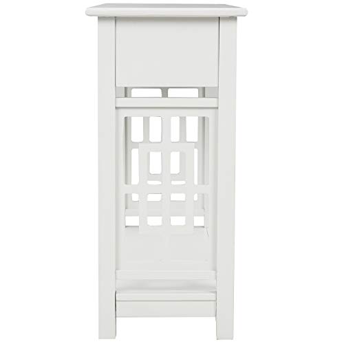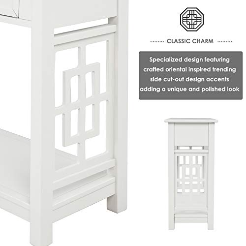 Ergode End Table White - Trending Campaign Style with Metal Corner Strapping and Flush Mount Drawer Pull - 1 Drawer - Wooden X Shape Base - Red, Black, and White Options