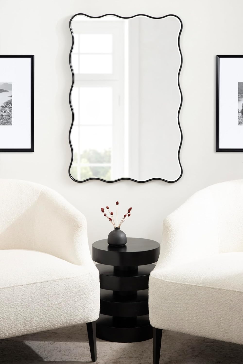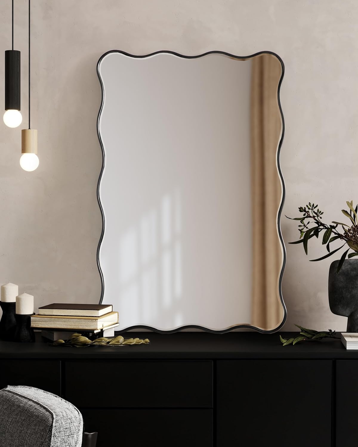 Kate and Laurel Viona Modern Scalloped Rectangle Mirror, 24 x 36, Black, Decorative Wavy Mirror with Unique Rippled Edge for Use as Bathroom Vanity Mirror