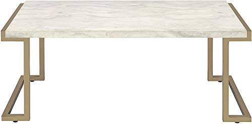 Knocbel Contemporary Coffee Table for Living Room, Faux Marble Top & Metal Base, 44" L x 24" W x 18" H (Marble and Champagne)