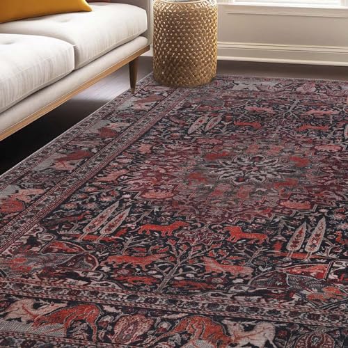 Eyely FMB104A-8 BOHEMIAN FLAIR Bohemian FLAIR Boho Vintage Medallion Indoor Area Rug Traditional;Transitional, Bedroom, Kitchen, Living Room, Easy-Cleaning, Non-Shedding, 8 X 10, Pink/Cream