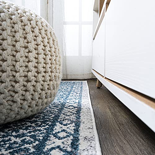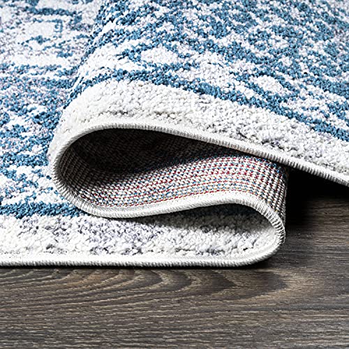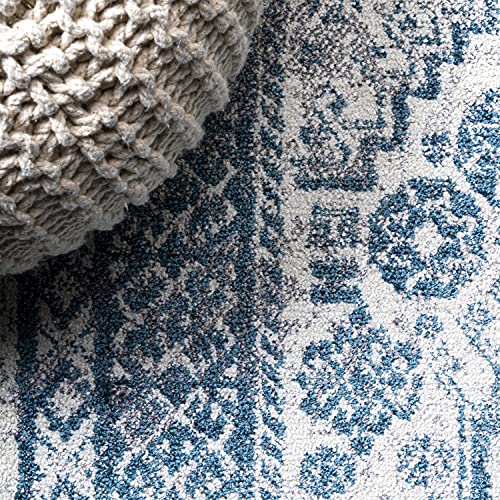 Superior Large Indoor Area Rug, Modern Floor Decor for Living/Dining Room, Kitchen, Bedroom, Office, Entry, Flat-Weave, Floral Medallion, Cotton Backing, Fiorella Collection, 5' x 7' 6", Light Blue