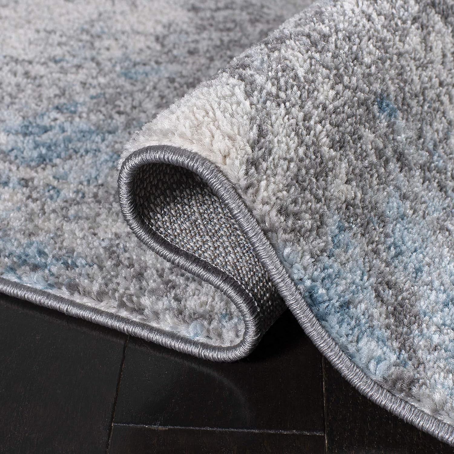 SAFAVIEH Tulum Collection Area Rug - 9' x 12', Grey & Blue, Modern Abstract Design, Non-Shedding & Easy Care, Ideal for High Traffic Areas in Living Room, Bedroom (TUL207F)