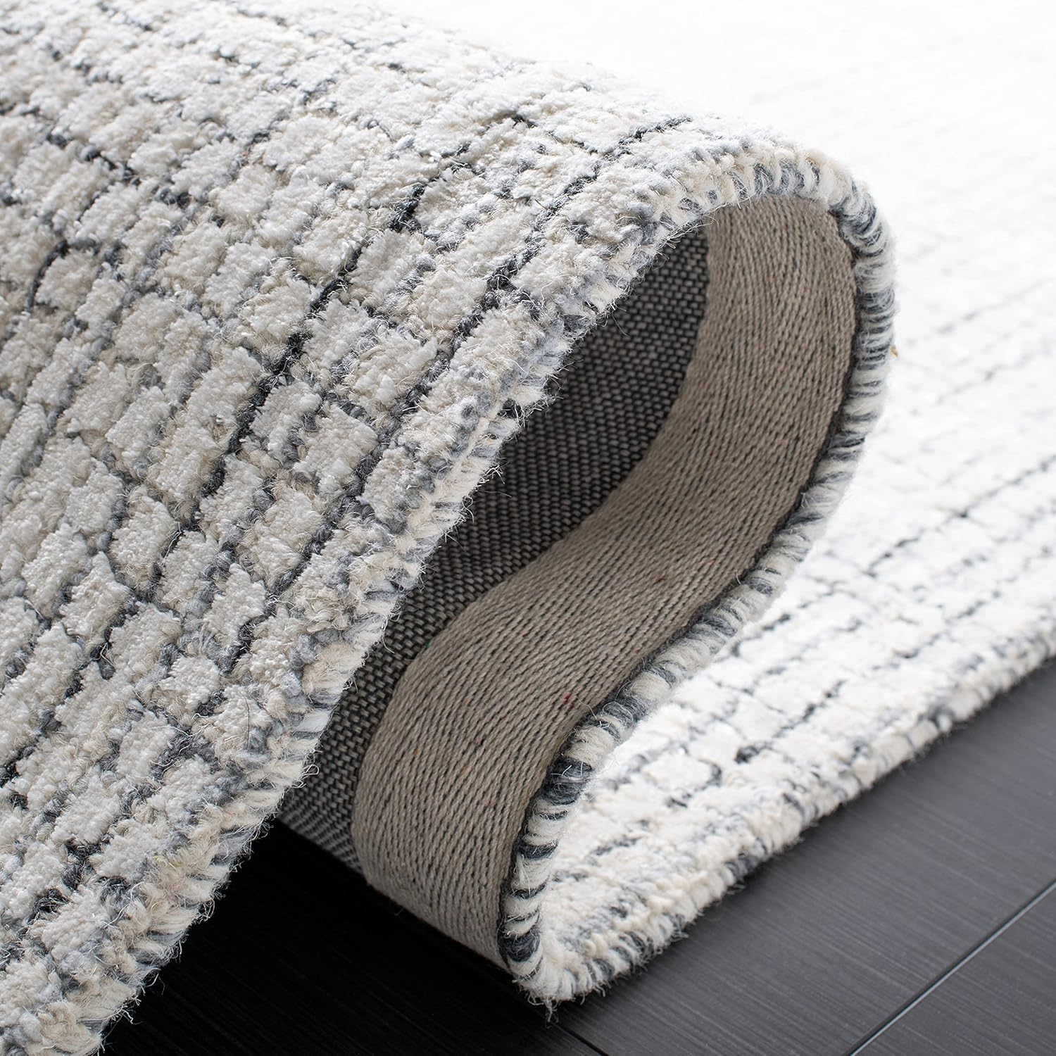 SAFAVIEH Abstract Collection Accent Rug - 2' x 3', Ivory & Grey, Handmade Wool & Viscose, Ideal for High Traffic Areas in Entryway, Living Room, Bedroom (ABT470F)