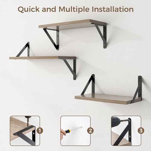 White Floating Shelves Set of 3 with Black Bracket, Wooden Wall Book Shelves, Wall Mounted Bathroom Shelves, Modern Storage Shelf Bathroom Organizer, Living Room, Kitchen, Office (16.5 inches Long)