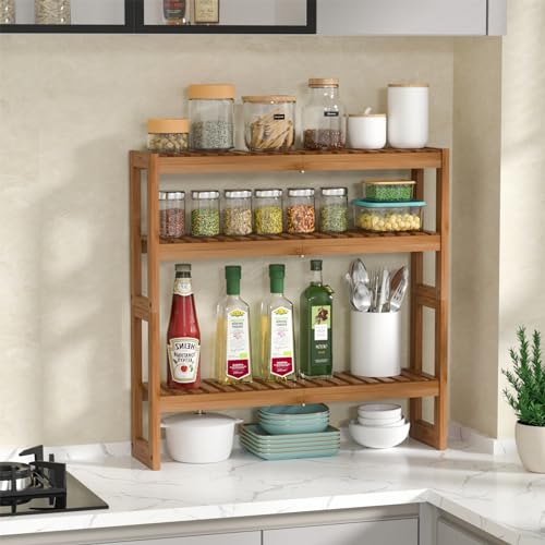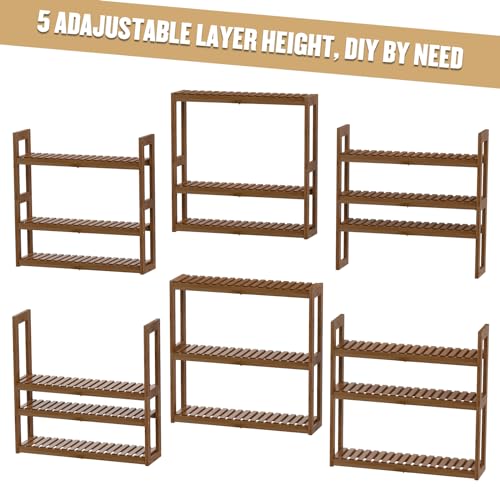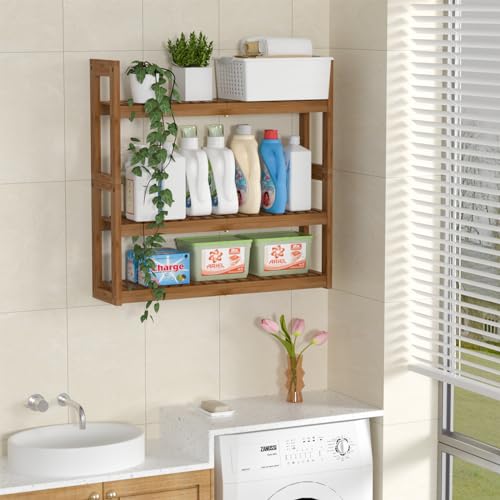 Domax Bathroom Shelves Over The Toilet Storage Shelf - 3 Tier Wall Mount Bamboo Bathroom Shelf Organizer Multifunctional Adjustable Layer Free Standing Utility Shelves for Bathroom Living Room Kitchen