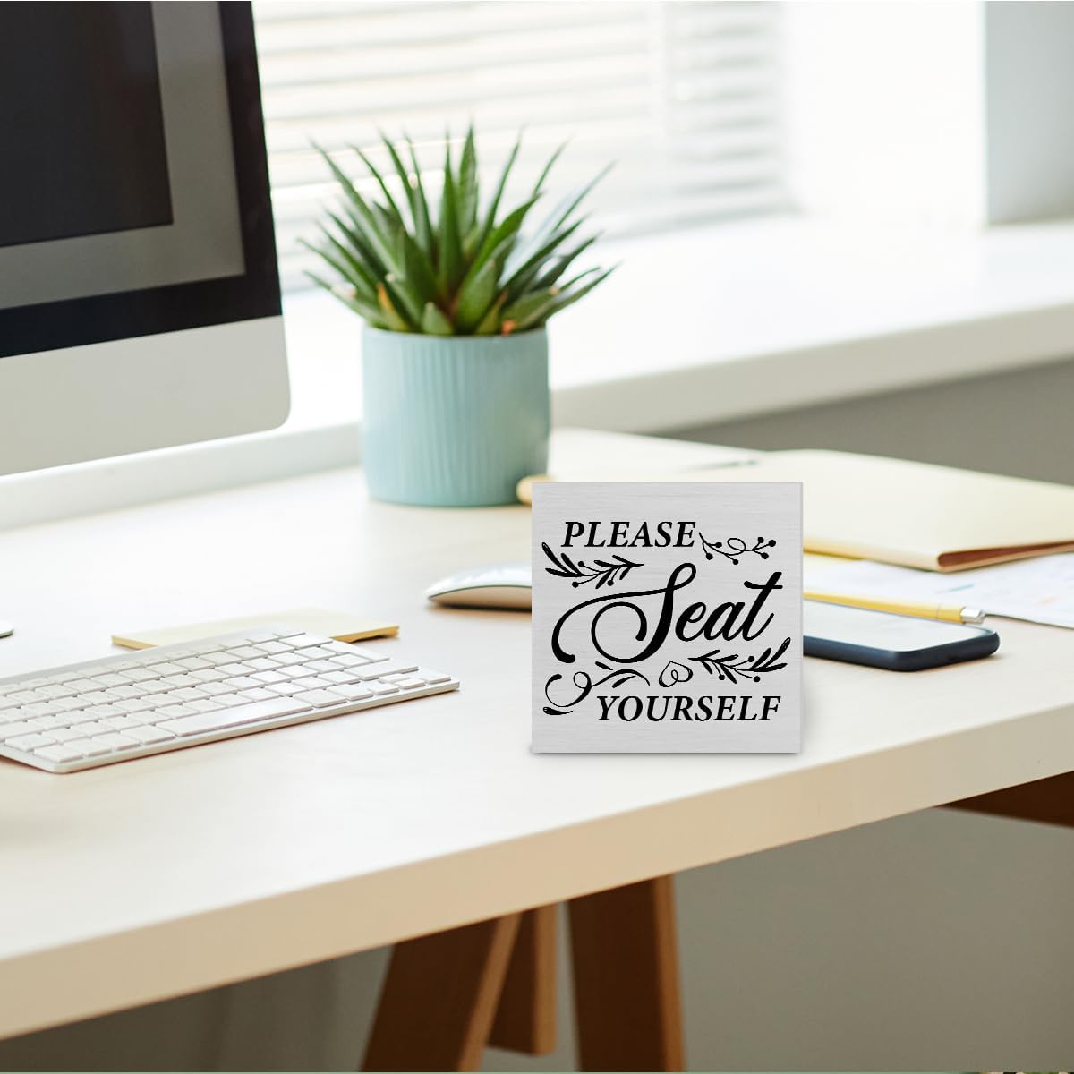 Rustic Bathroom Wooden Box Sign Desk Decor, Please Seat Yourself Wood Block Sign Home Bathroom Toilet Tabletop Shelf Desk Decoration, 5 X 5 Inches