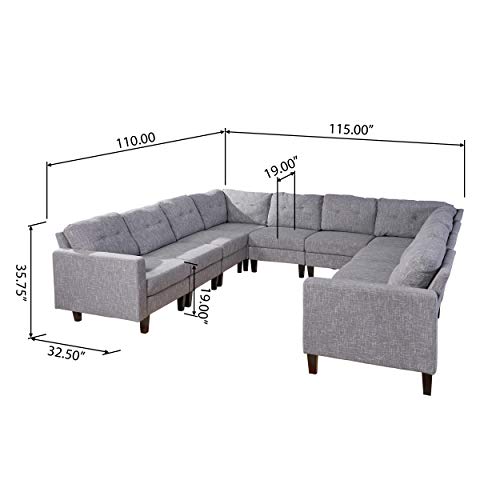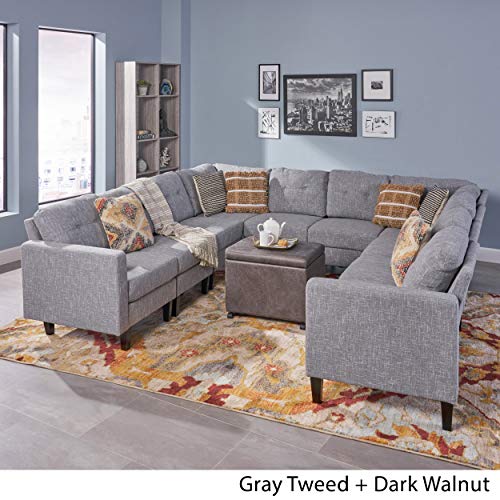 Christopher Knight Home Marsh Mid Century Modern U-Shaped Sectional Sofa Set, Gray Tweed, Dark Walnut