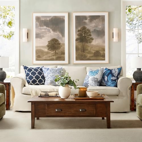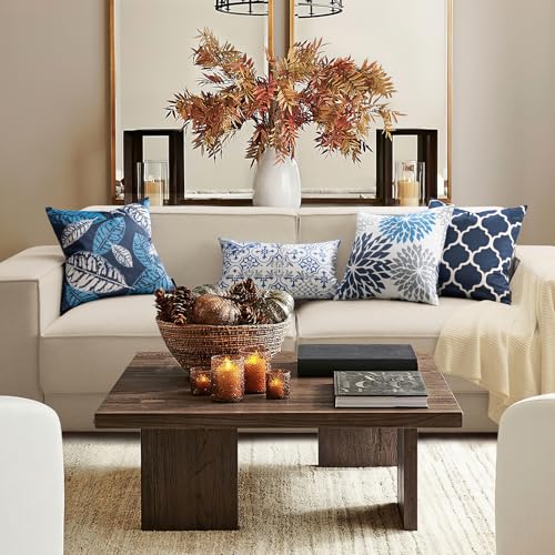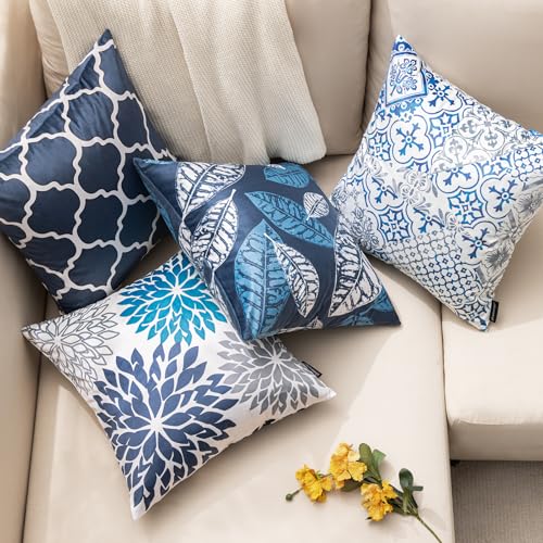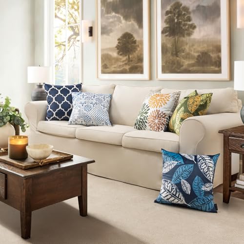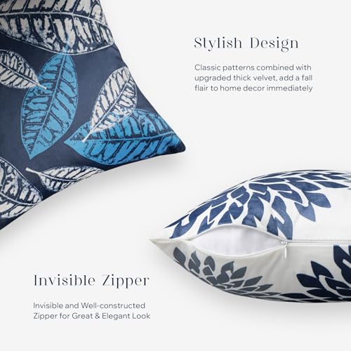 Phantoscope Set of 4 New Living Series Leaf Geometric Throw Decorative Velvet Pillow Cover Cushion Cover, Dark Blue 20 x 20 inches 50 x 50 cm