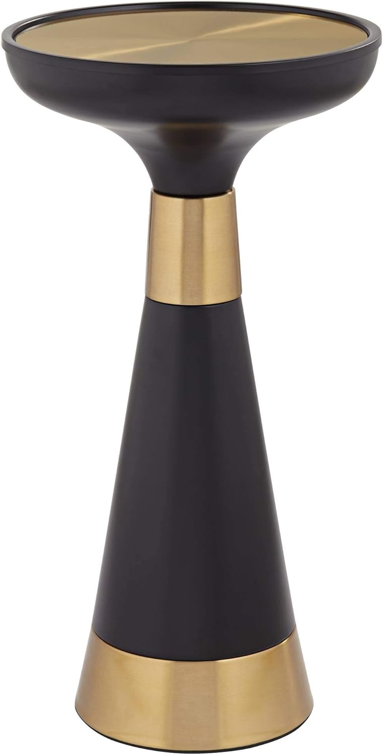 Studio 55D Roxanne Modern Black Gold Metal Round Accent Side End Table 13" Wide for Living Room Bedroom Bedside Entryway House Balcony Office Bathroom