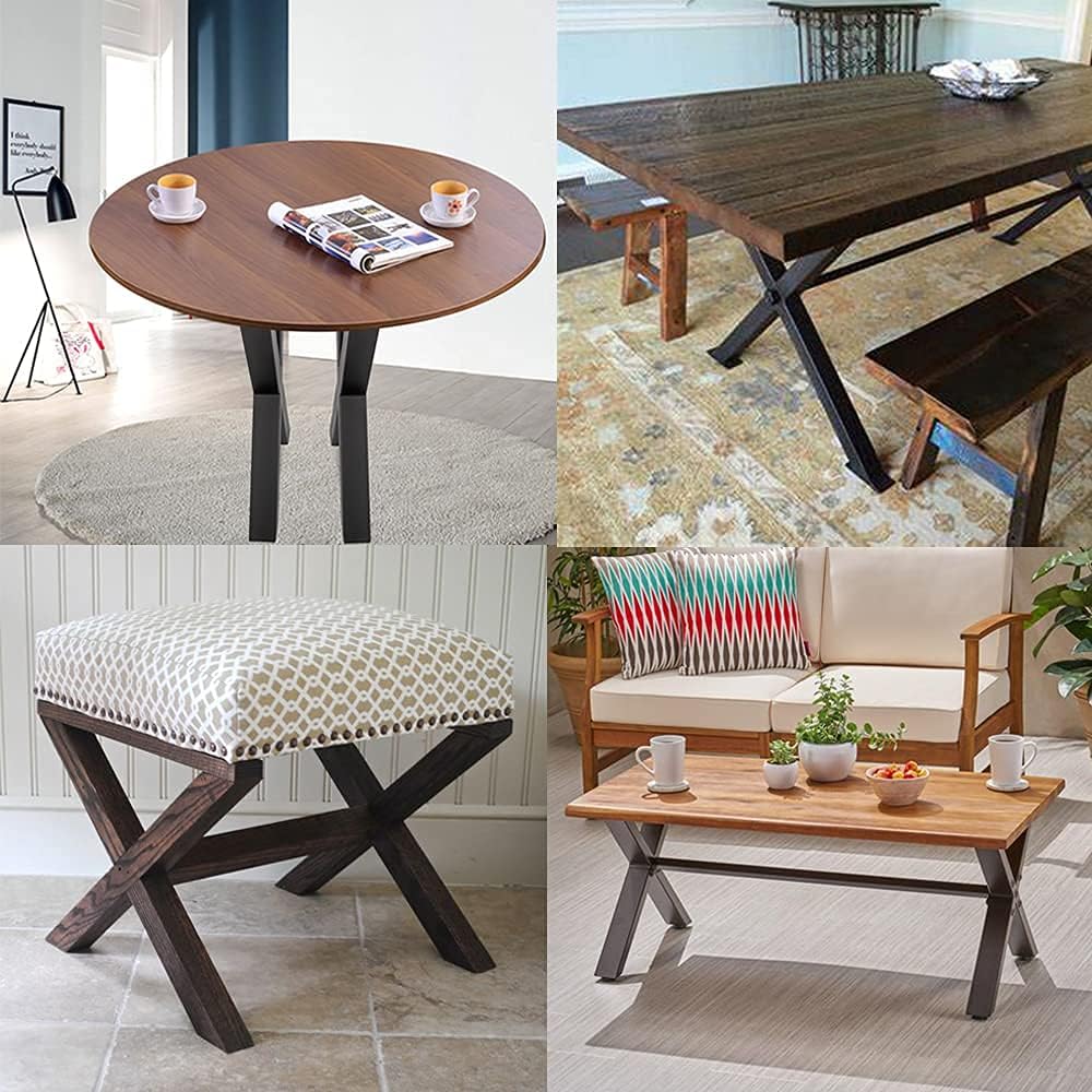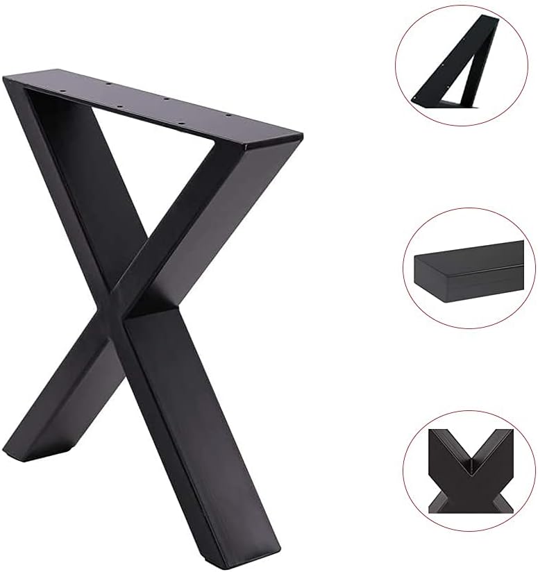 YUEWO Table Legs X Frame 28"x24" Heavy Duty Bench Furniture Legs 28 inch 24 inch Steel Dining Table Legs Computer Desk Legs(Set of 2)