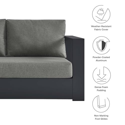Modway Tahoe Aluminum Modular Outdoor Patio Gray White with Weather-Resistant Cushions, Couch for Garden Backyard, Poolside, Left-Facing Loveseat