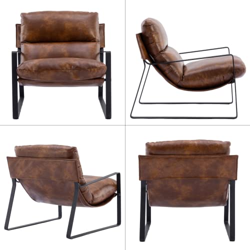 LukeAlon Modern PU Leather Accent Armchairs Set of 2, Upholstered Living Room Chairs with Metal Base Thickened Cushion Sofa Chairs Comfy Lounge Chair for Bedroom Living Room, Brown