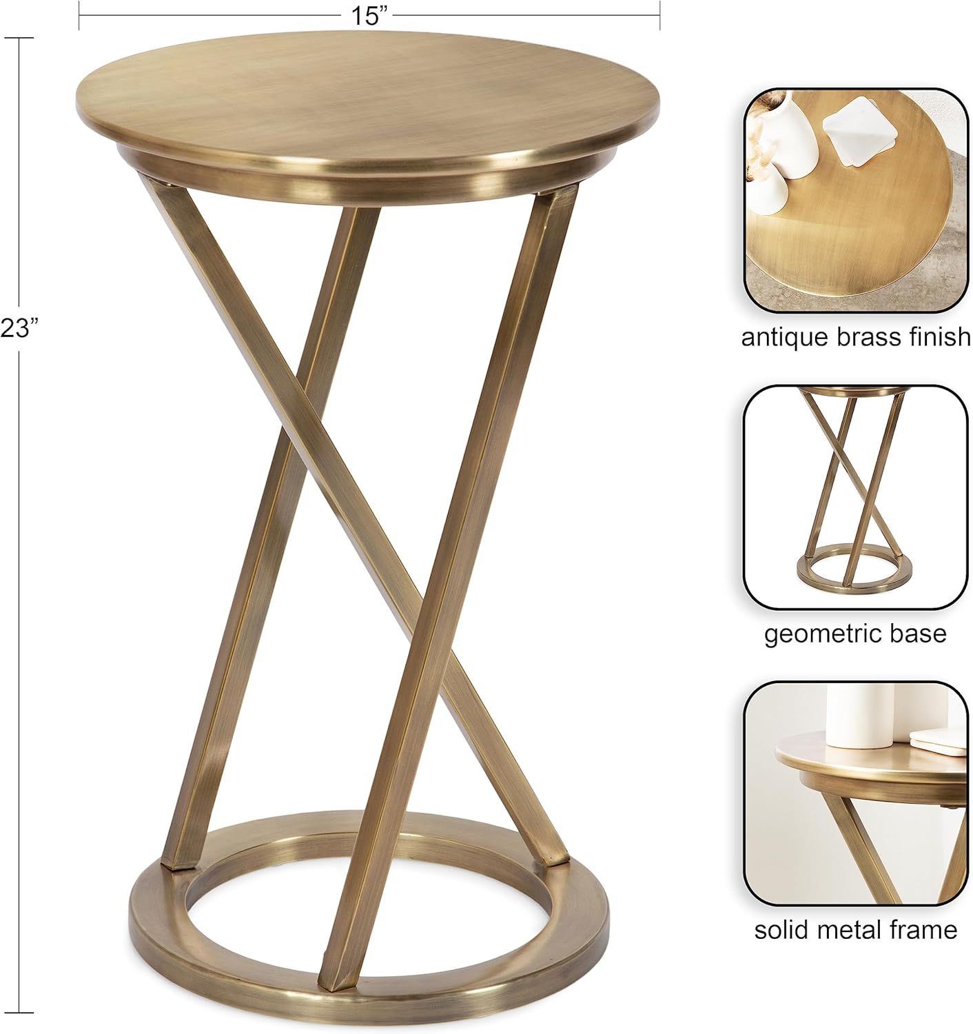 Kate and Laurel Aja Round Metal Side Table with Geometric Slanted Legs and Vintage Finish, 15x15x23, Gold
