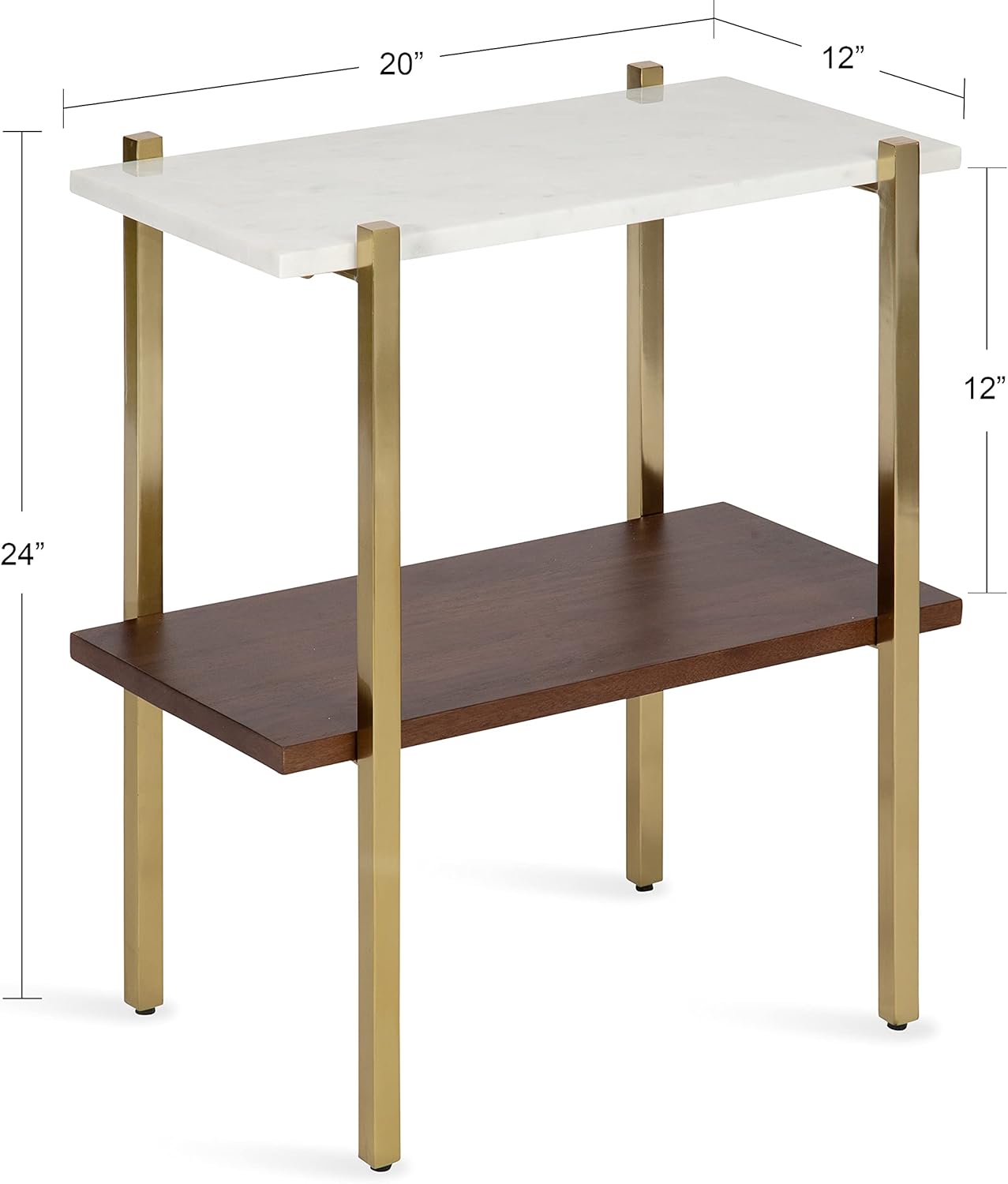 Kate and Laurel Abcott Wood and Metal Side Table, 20x12x24, White/Walnut Brown