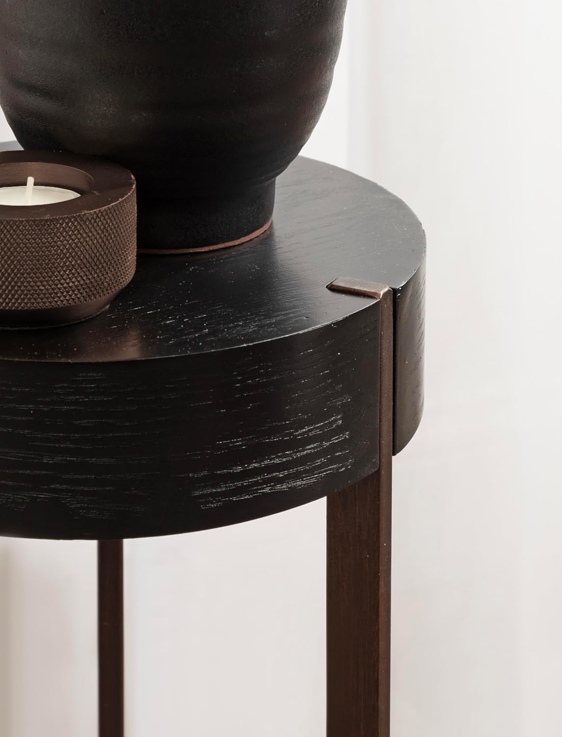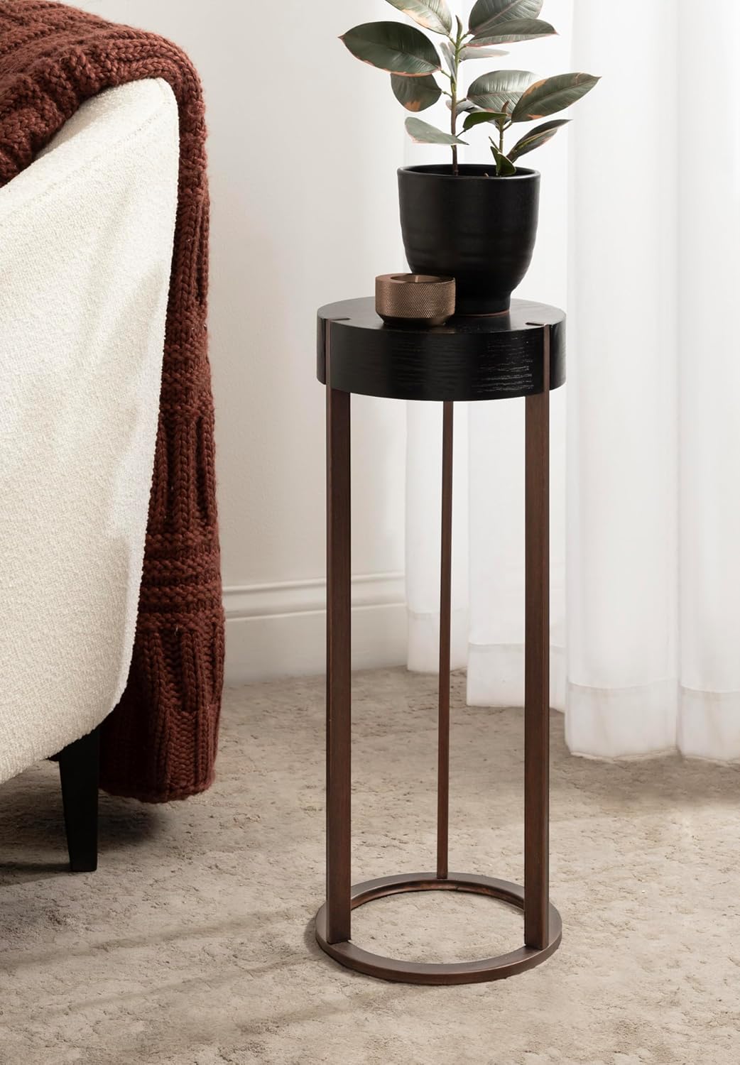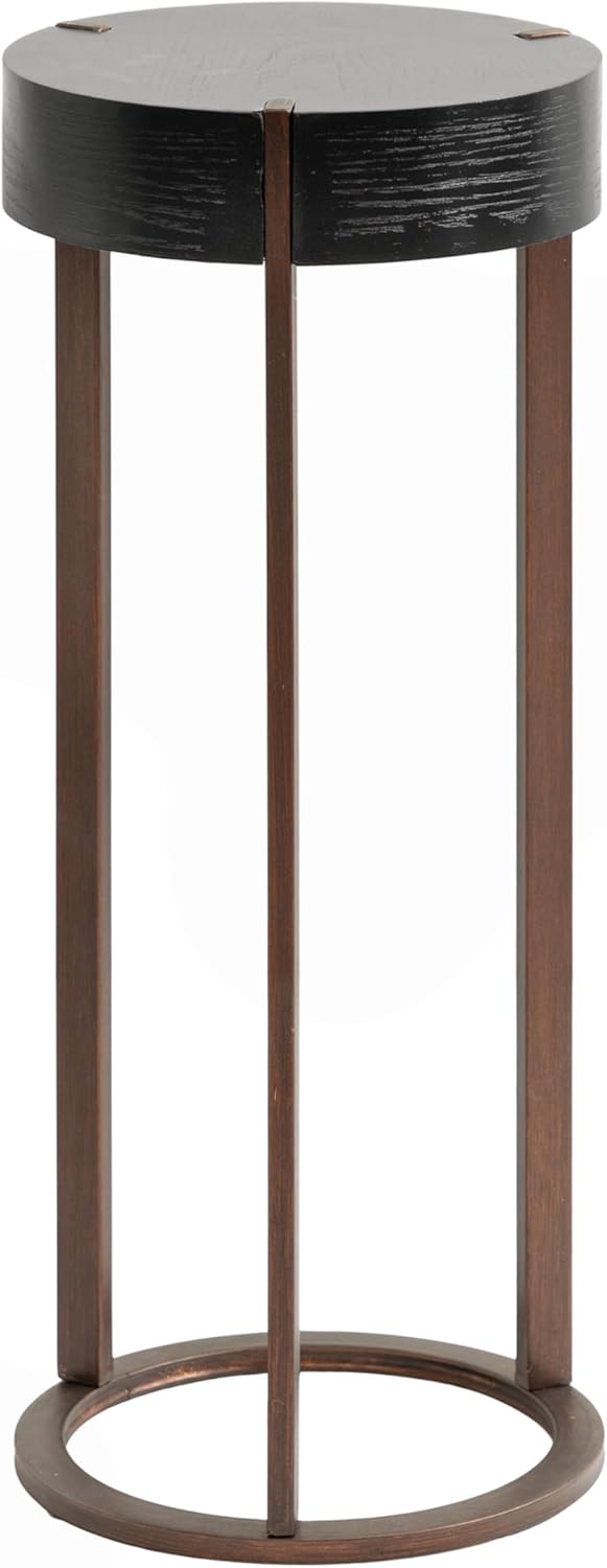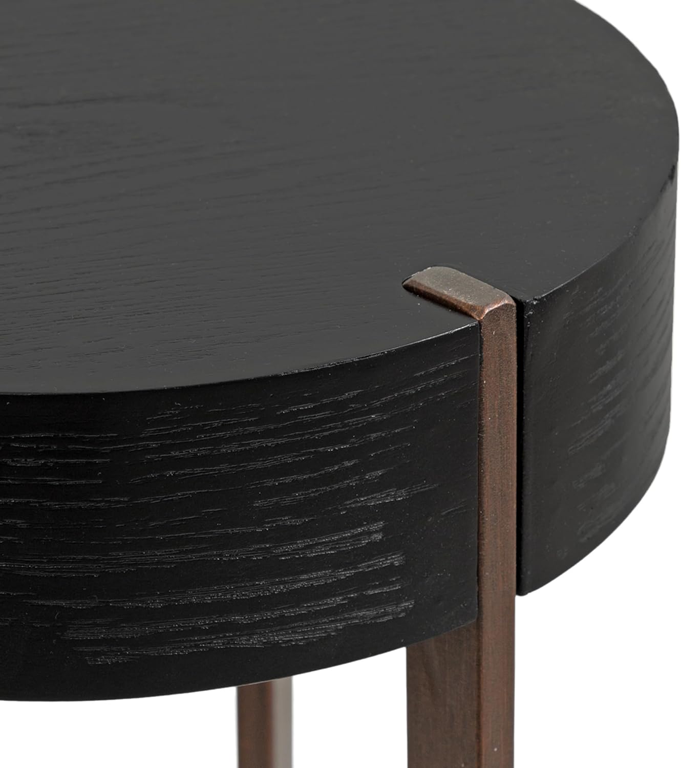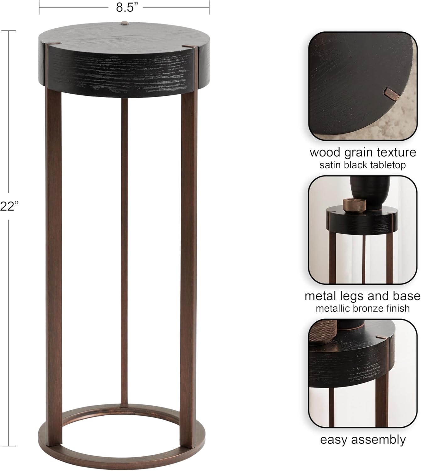 Kate and Laurel Rovin Modern Round Drink Table for Small Spaces and Textured Wood Grain Tabletop, 9x9x22, Black