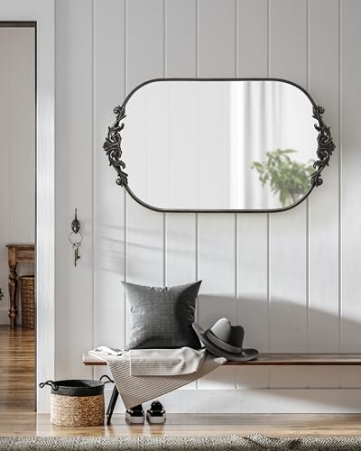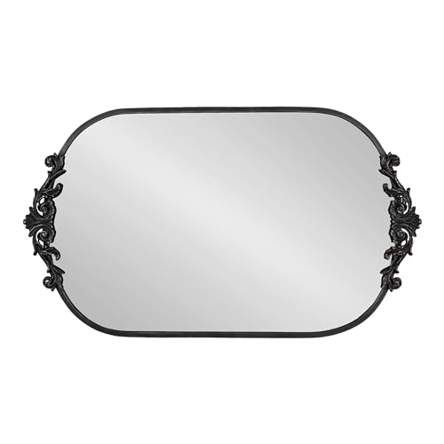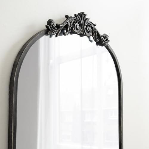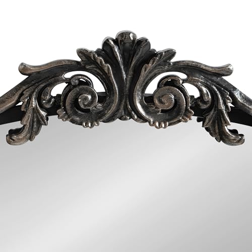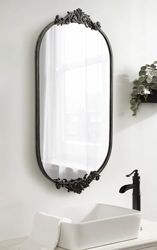 Kate and Laurel Arendahl Traditional Capsule Wall Mirror, 24 x 41, Black, Vintage Glam Baroque-Inspired Round Bathroom Vanity Mirror with Ornate Crown