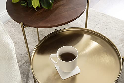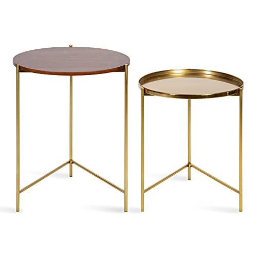 Kate and Laurel Ulani Modern Nesting Side Table, Set of 2, White and Gold, Sophisticated Glam End Tables for Storage and Display