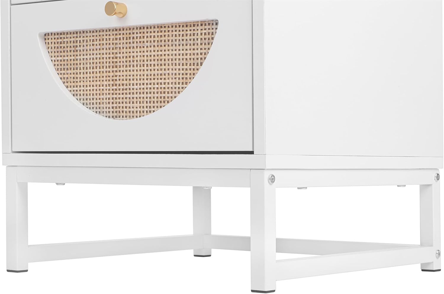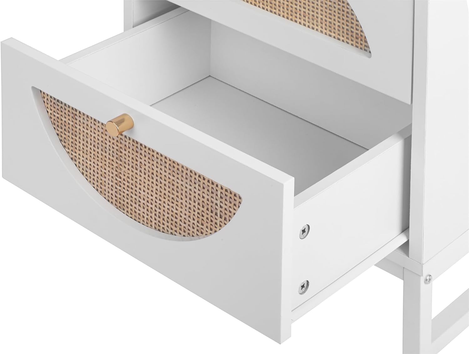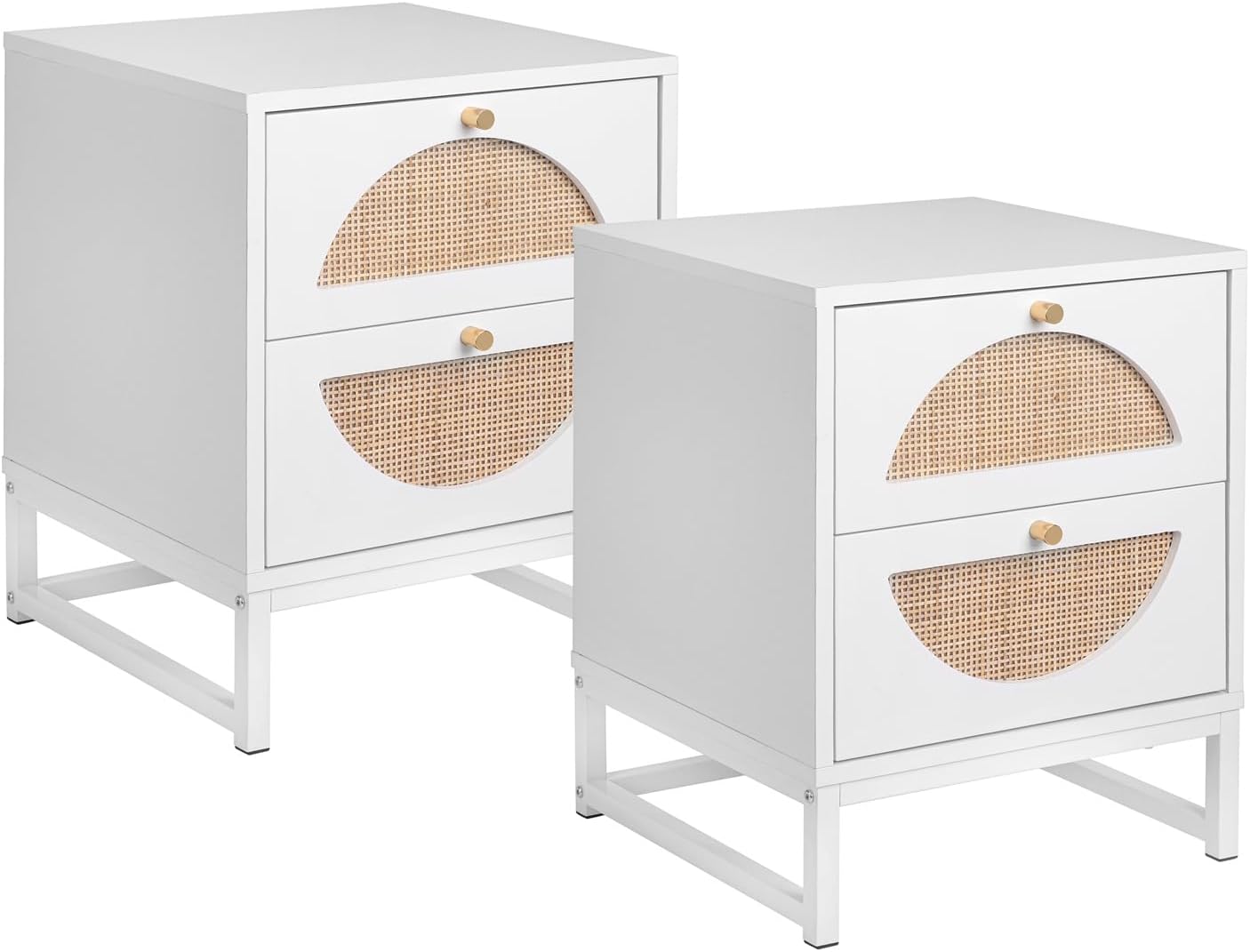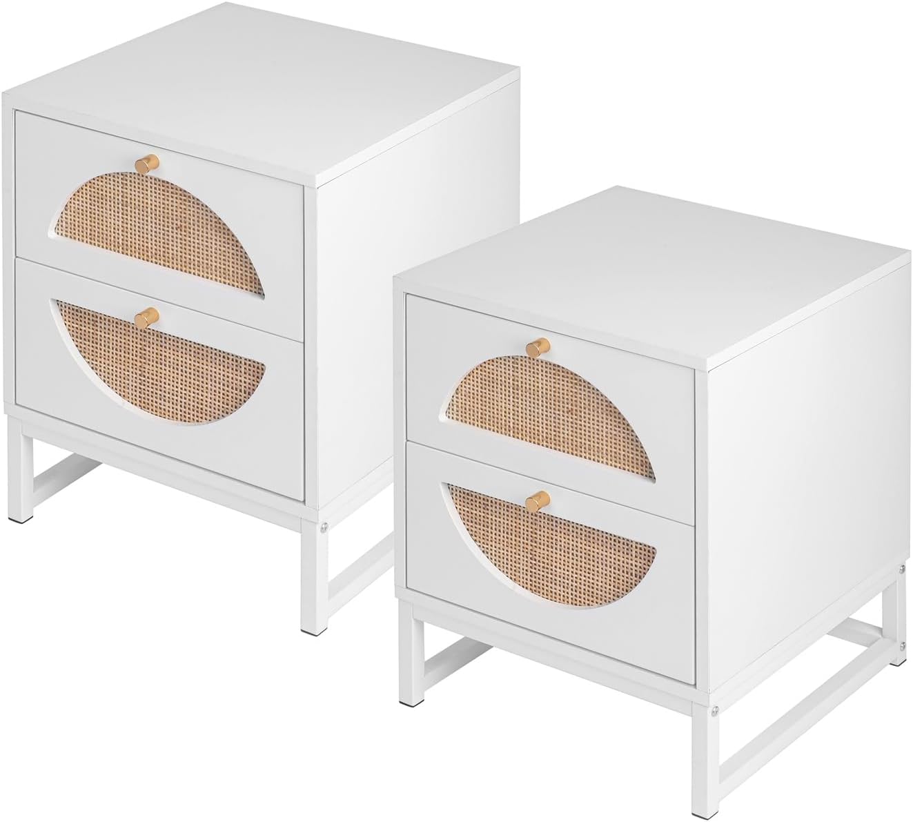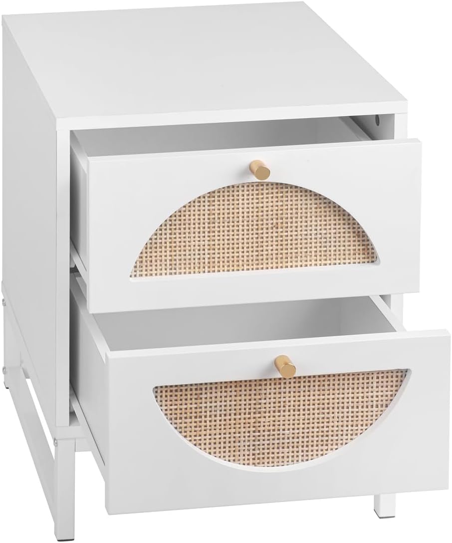 ZeHuoGe Rattan 2 Drawers Nightstand Set of 2,Narrow Cane Storage Cabinet for Entryway,Storage Organizer with Caning Doors,End Tables,Side table with Cane Webbing for Bedroom, Living Room