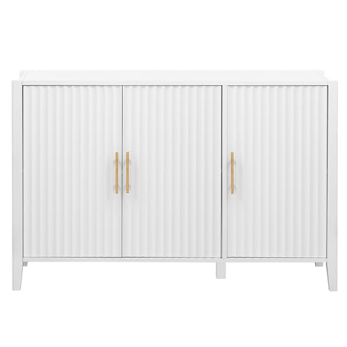 Amposei Accent Sideboard Cabinet 48-Inch Modern Credenza Console Cabinet Buffet Table with 3 Doors for Living Room Entryway, White