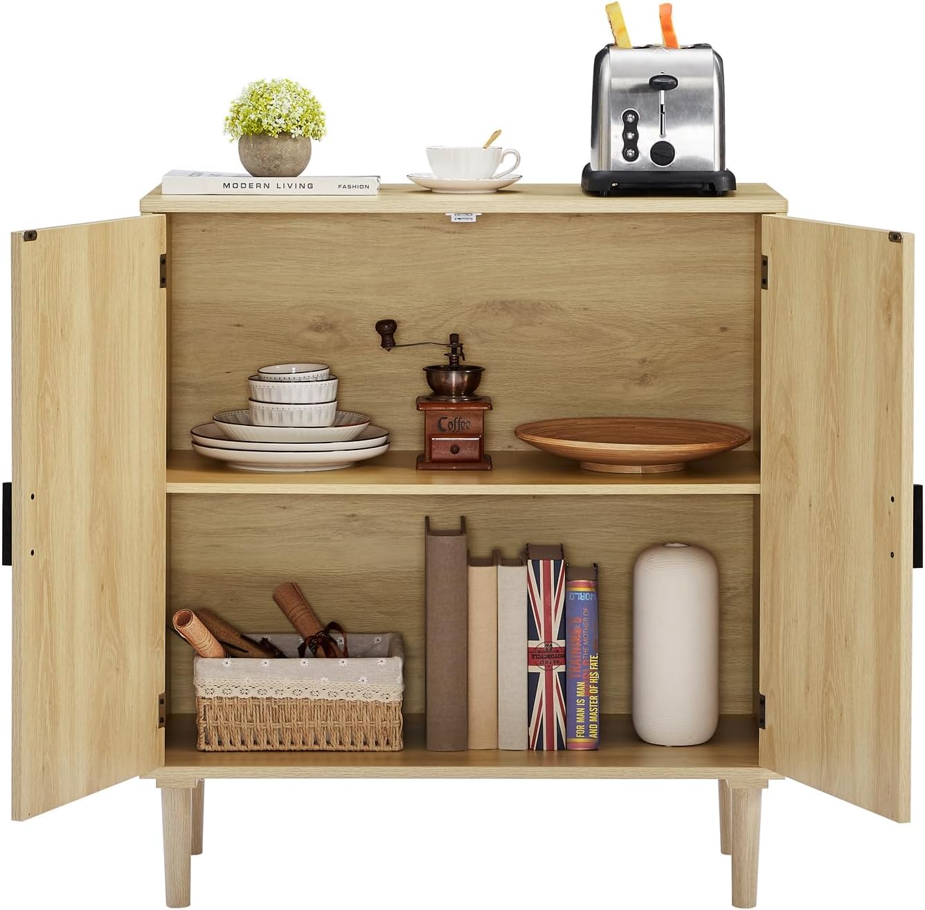 ZeHuoGe Rattan Cabinets with 2 Doors, Wood Buffets Cabinet with Caning Doors, Cane Storage Cabinet,Decoration Cabinet with Cane Webbing for Living Room