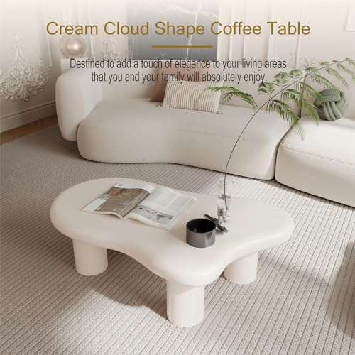 39.37" Cloud Coffee Table, Wooden Cute Irregular Tea Table with 4 Legs Round Edge for Living Room Apartment, Matte Black