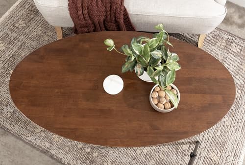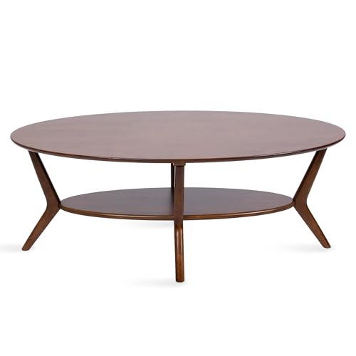 Kate and Laurel Nylah Mid-Century Modern Oval Coffee Table with Storage for Living Room Home Decor, 48x26x18, Black
