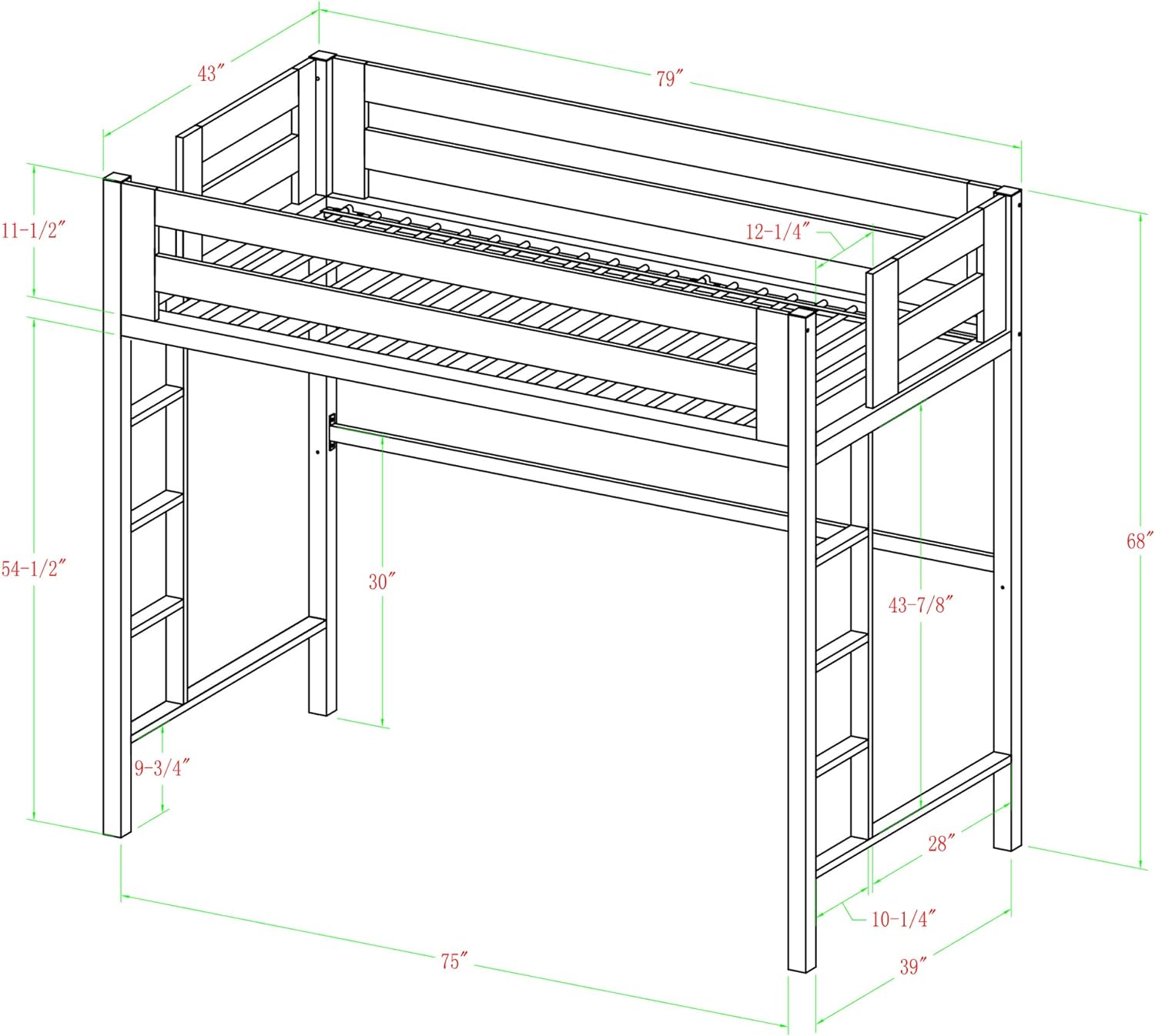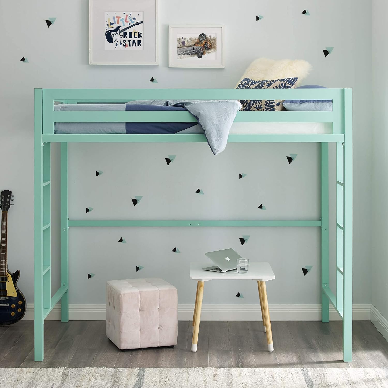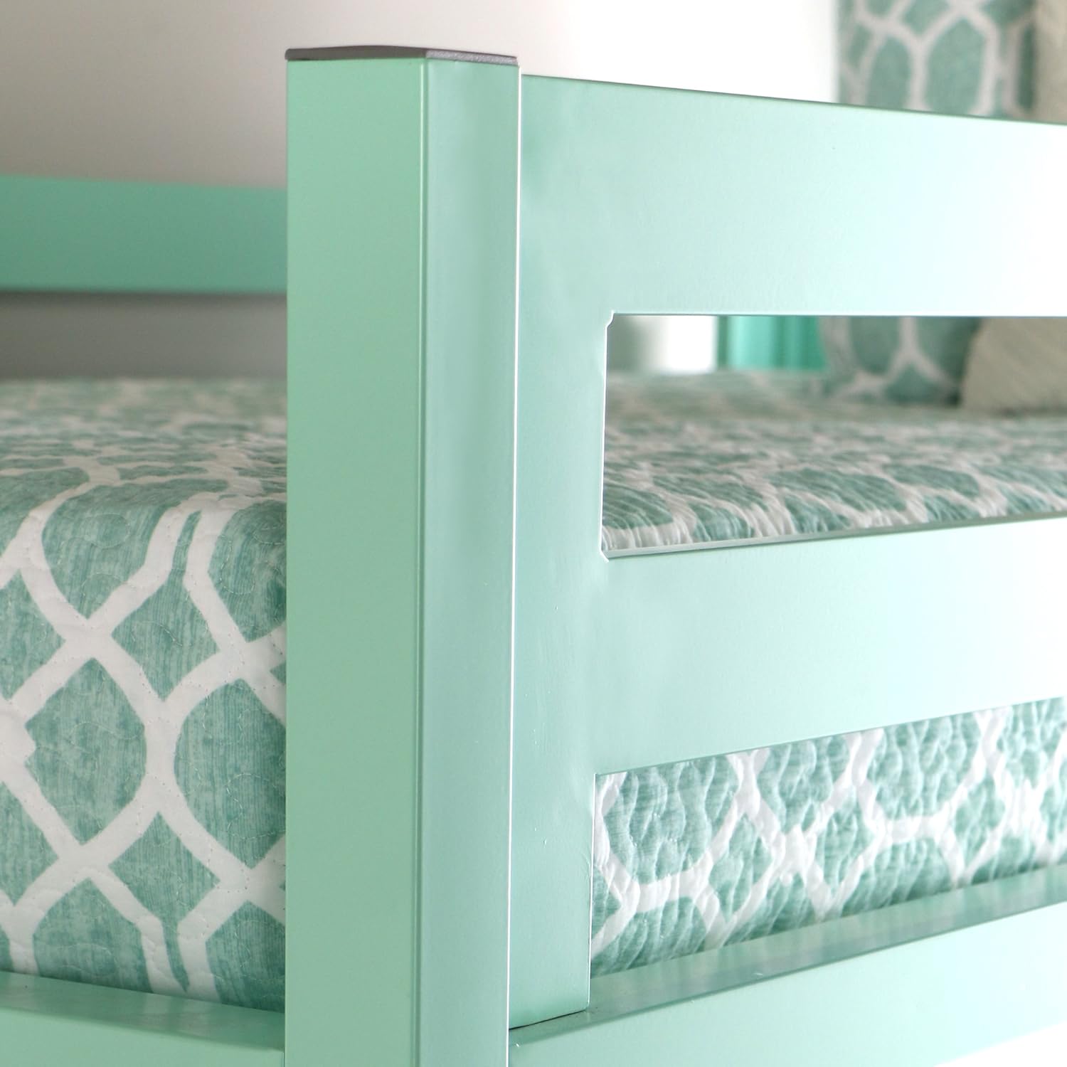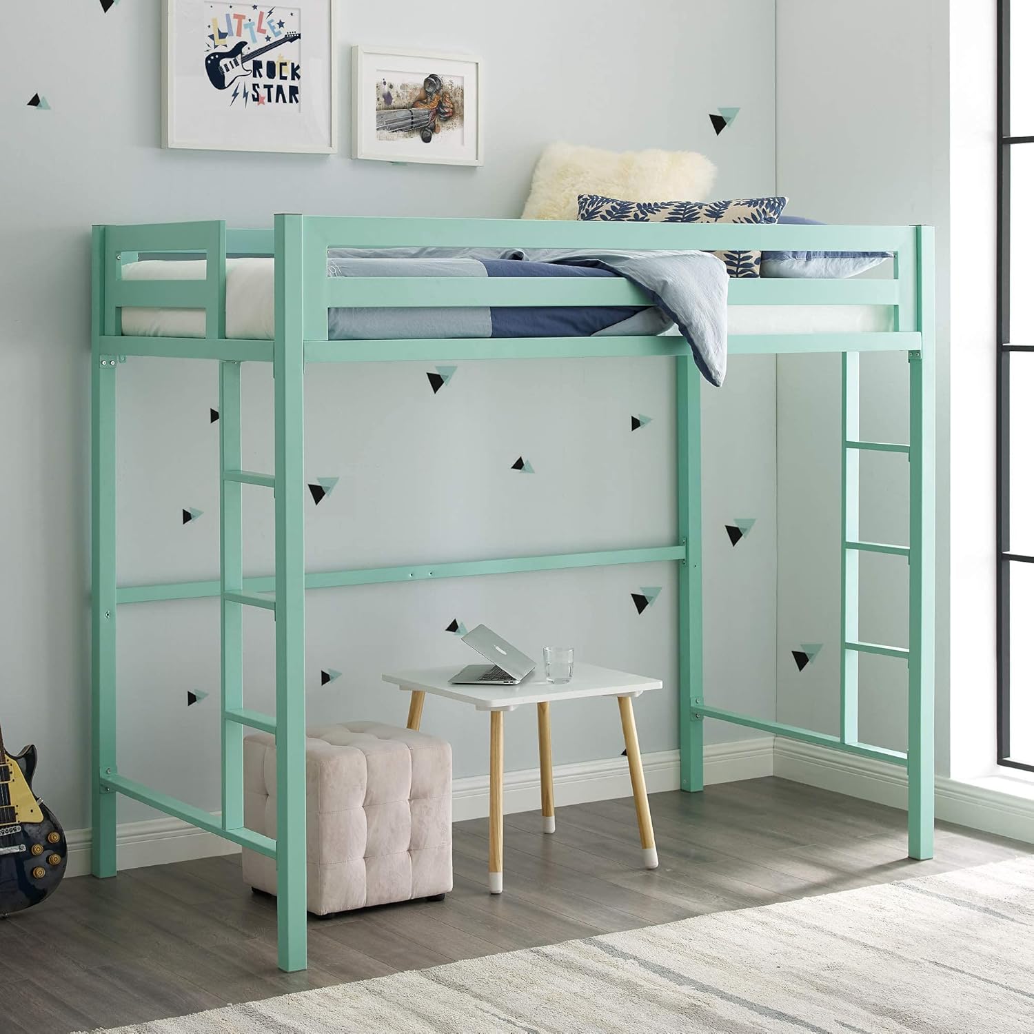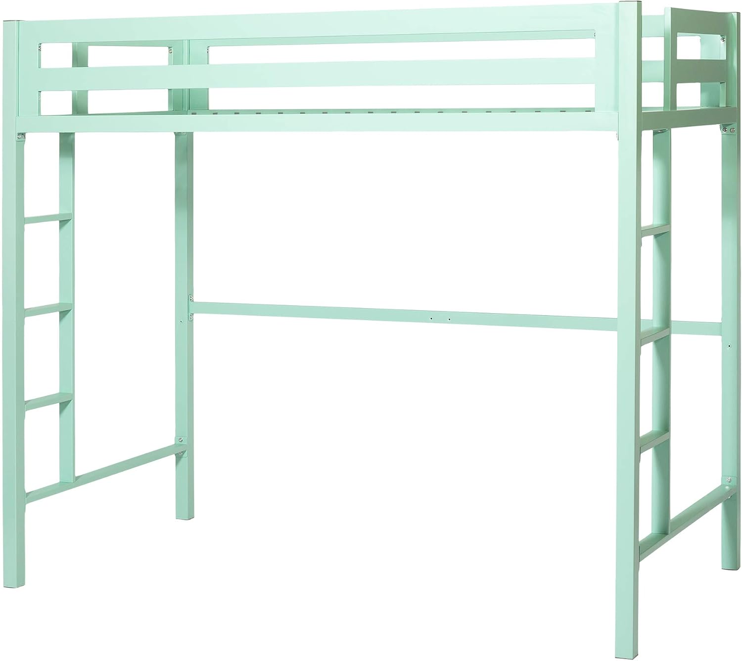 Modern Twin Over Loft Metal Bunk Bed with Integrated Guardrails - Mint