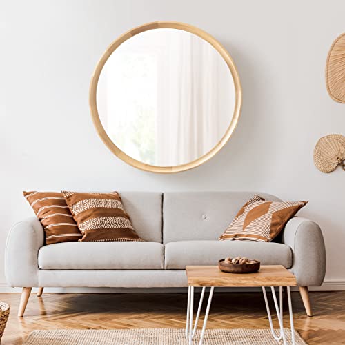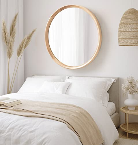 Kate and Laurel Hatherleigh Modern Farmhouse Round Wooden Wall Mirror, 30 Inch Diameter, Rustic Brown, Decorative Wood Circle Mirror for Use in Bathroom, Entryway, or Bedroom