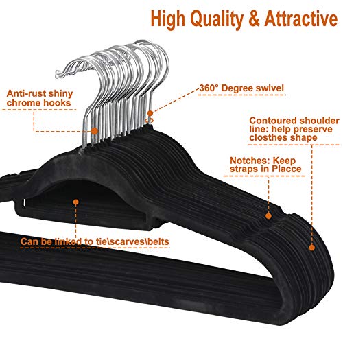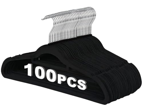 ZENY Premium Velvet Hangers 100 Pack, Clothes Hangers Non-Slip Felt Hangers, Sturdy Grey Hangers Heavy Duty Coat Hangers, 360° Swivel Hook, Durable Suit Hangers for Closet, Space Saving
