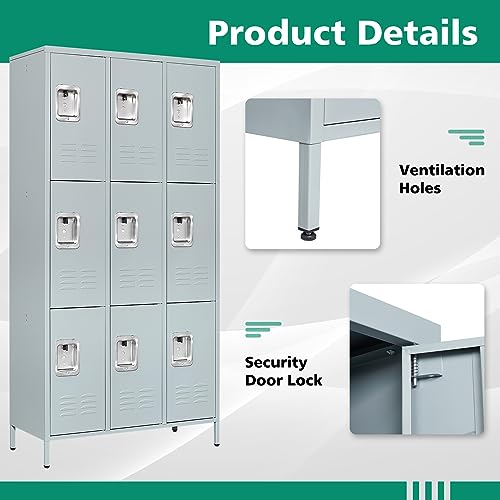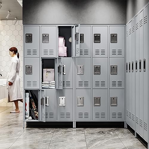 Letaya Storage Lockers with Lock Door,Metal Storage Cabinet 3 Tier with Hook for Employees, School,Gym, Home,Office(1 Door-Gray)