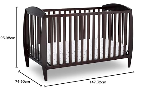Delta Children Twinkle 4-in-1 Convertible Baby Crib, Sustainable New Zealand Wood, Dark Chocolate and Delta Children Twinkle Galaxy Dual Sided Recycled Fiber Core Crib and Toddler Mattress (Bundle)