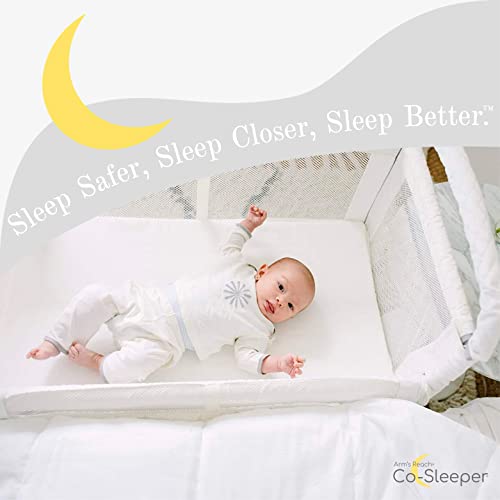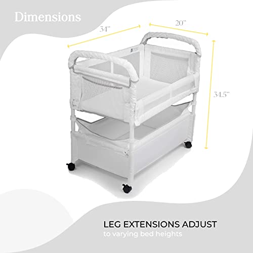 Arm’s Reach Clear-Vue Co-Sleeper Bedside Bassinet Featuring Clear Mesh Panels with Fold-Down Side, Large Attached Storage Basket, 4 Wheels, and Height-Adjustable Legs, White