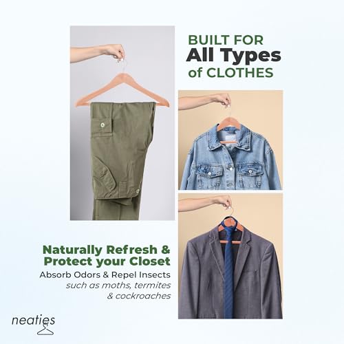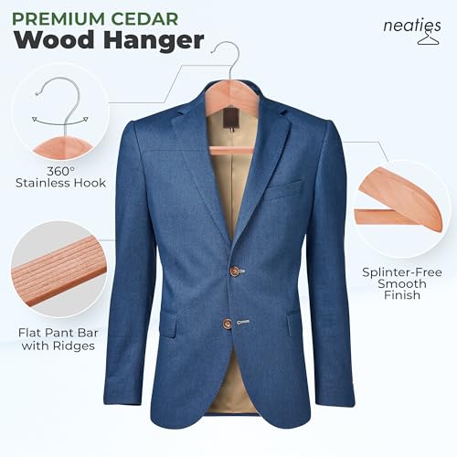 Neaties Premium Red Cedar Hangers for Closet Wide 2" Thick Cedarwood Hangers with Flat Bar - Cedar Pant Bar Cedar Jacket Hangers Cedar Suit Hangers Wooden Hangers Cedar Coat Hangers (8 Pack)