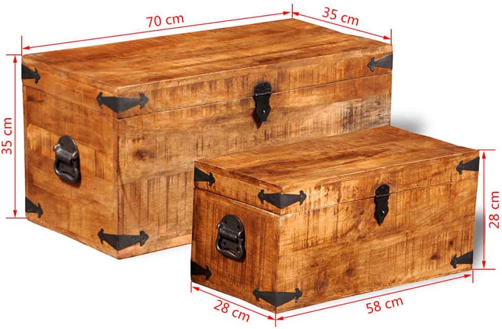 vidaXL Set of 2 Mango Wood Blanket Toy Storage Chests Boxes Trunks Home Decor