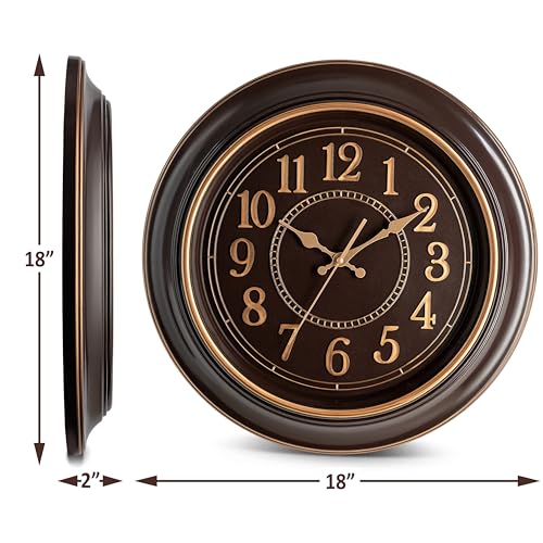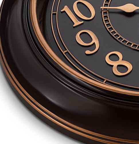 Bernhard Products Large Wall Clock 18 Inch Quality Quartz Silent Non Ticking, Battery Operated for Home/Living Room/Over Fireplace, Beautiful Decorative Stylish Clock, Deep Brown & Copper Numbers