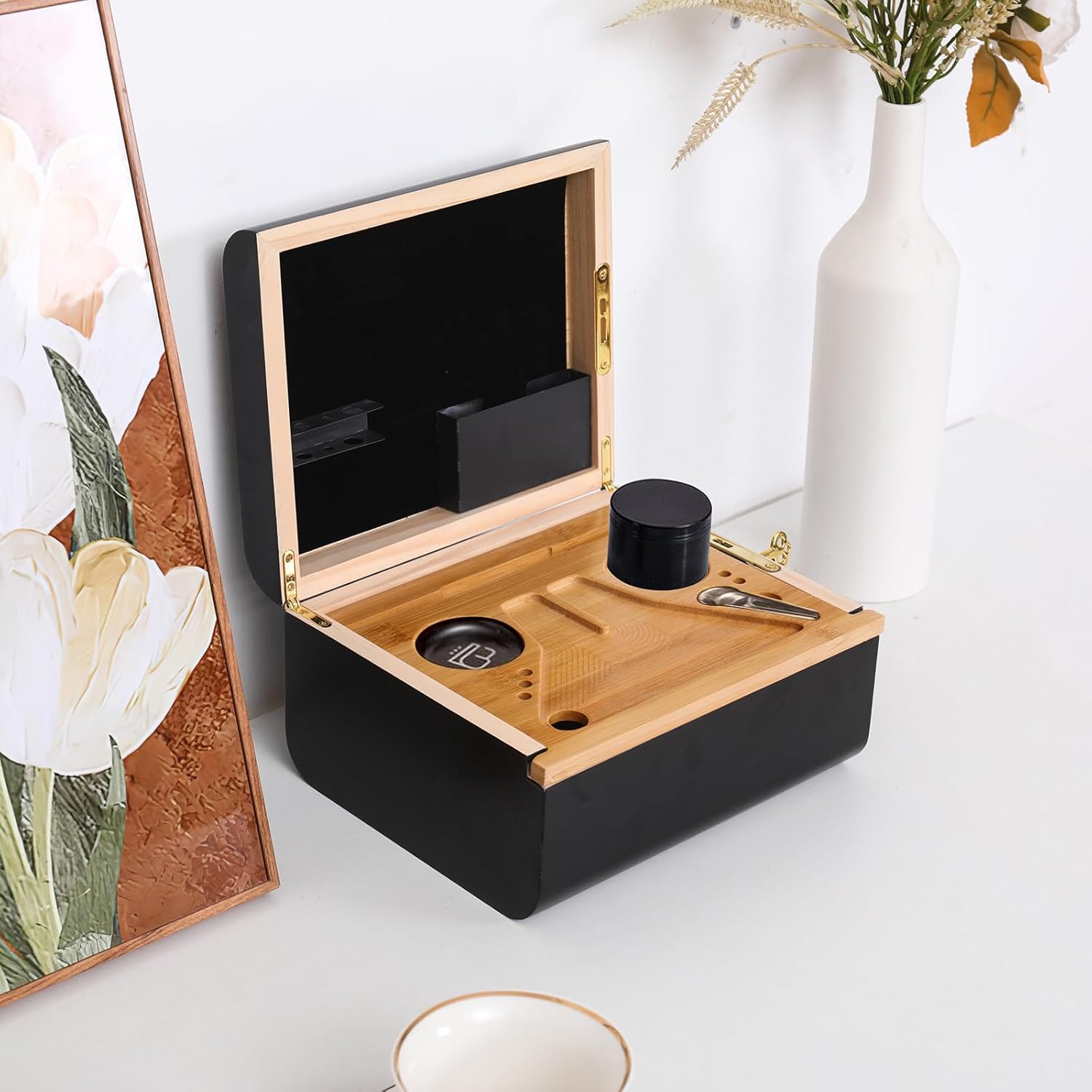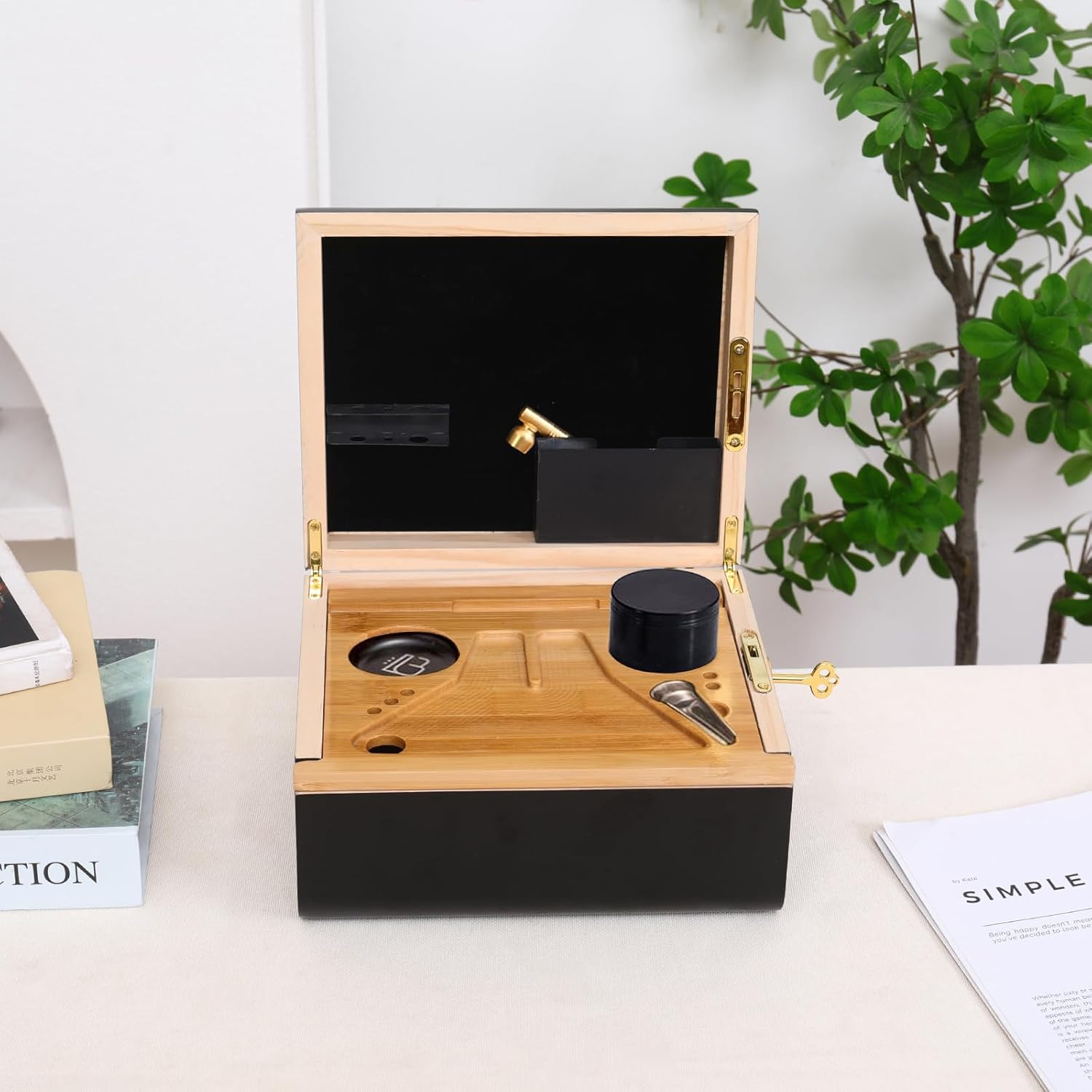 Premium Large Bamboo Chest - Storage and Decorative Chests with Vintage Locks - Wooden Locking Storage Chest with Rolling Tray - Wooden Storage Chest with Accessories, black
