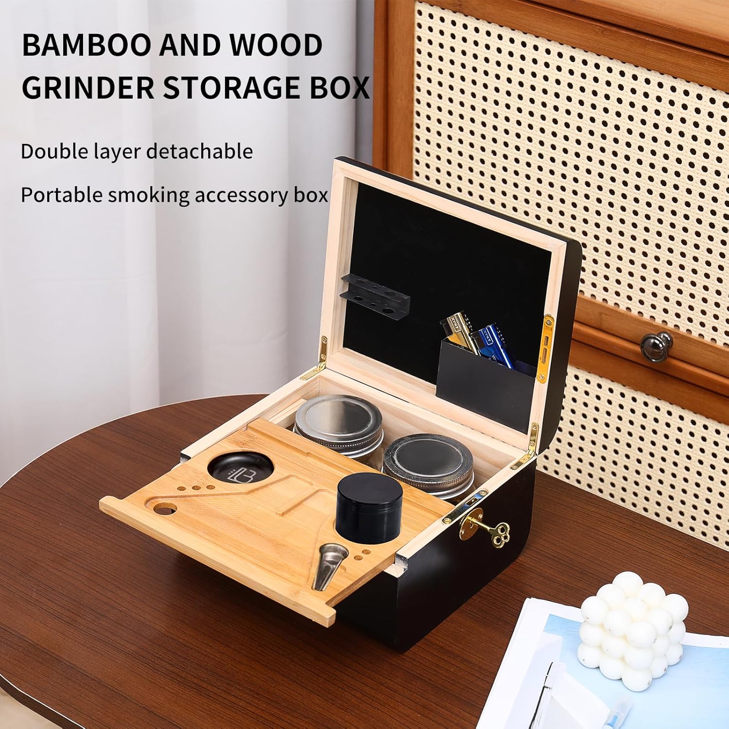 Premium Large Bamboo Chest - Storage and Decorative Chests with Vintage Locks - Wooden Locking Storage Chest with Rolling Tray - Wooden Storage Chest with Accessories