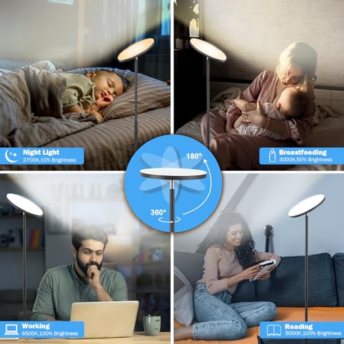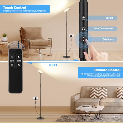 Mushroom Lamp Floor Lamp, 3600LM 36W Super Bright Standing Lamp with Remote/Touch Control, Modern Torchiere Room Decor with 2700K-6500K Stepless Dimming, 69" LED Lights for Bedroom Living Room Office