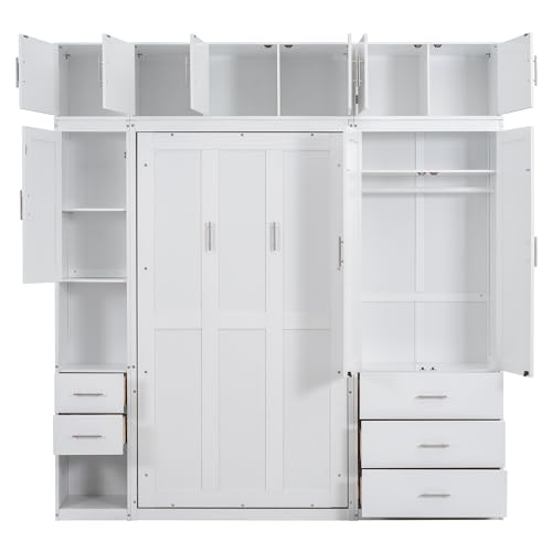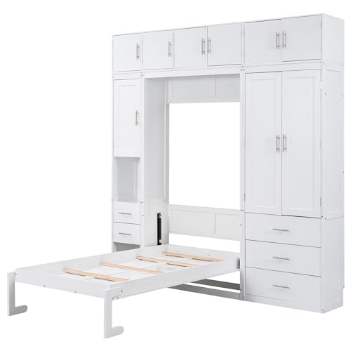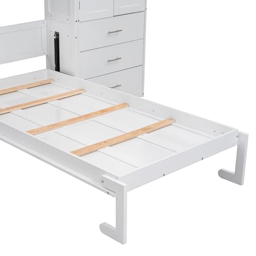 Twin Size Murphy Bed Wardrobe with Large Storage and Lockers Wall Bed with Cabinets and Drawers for Multipurpose Room, Space Saving
